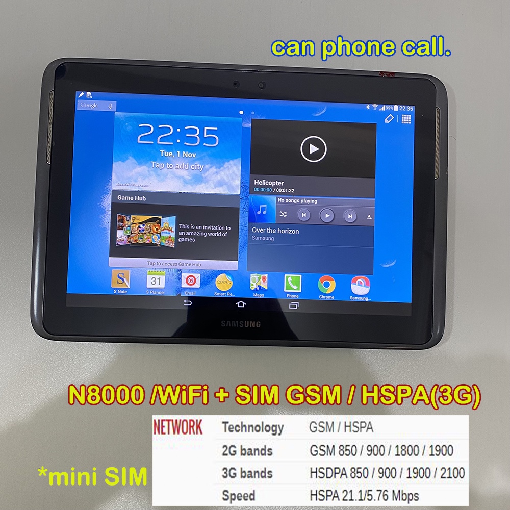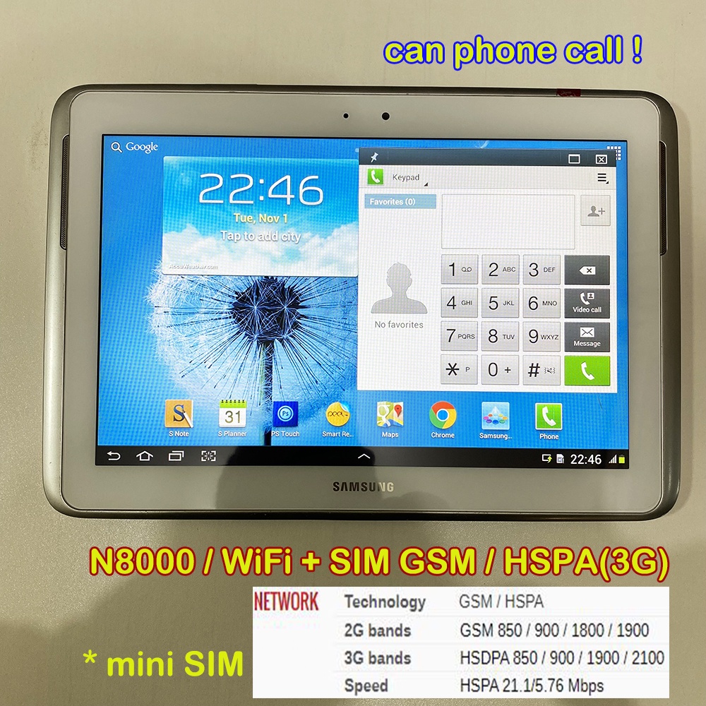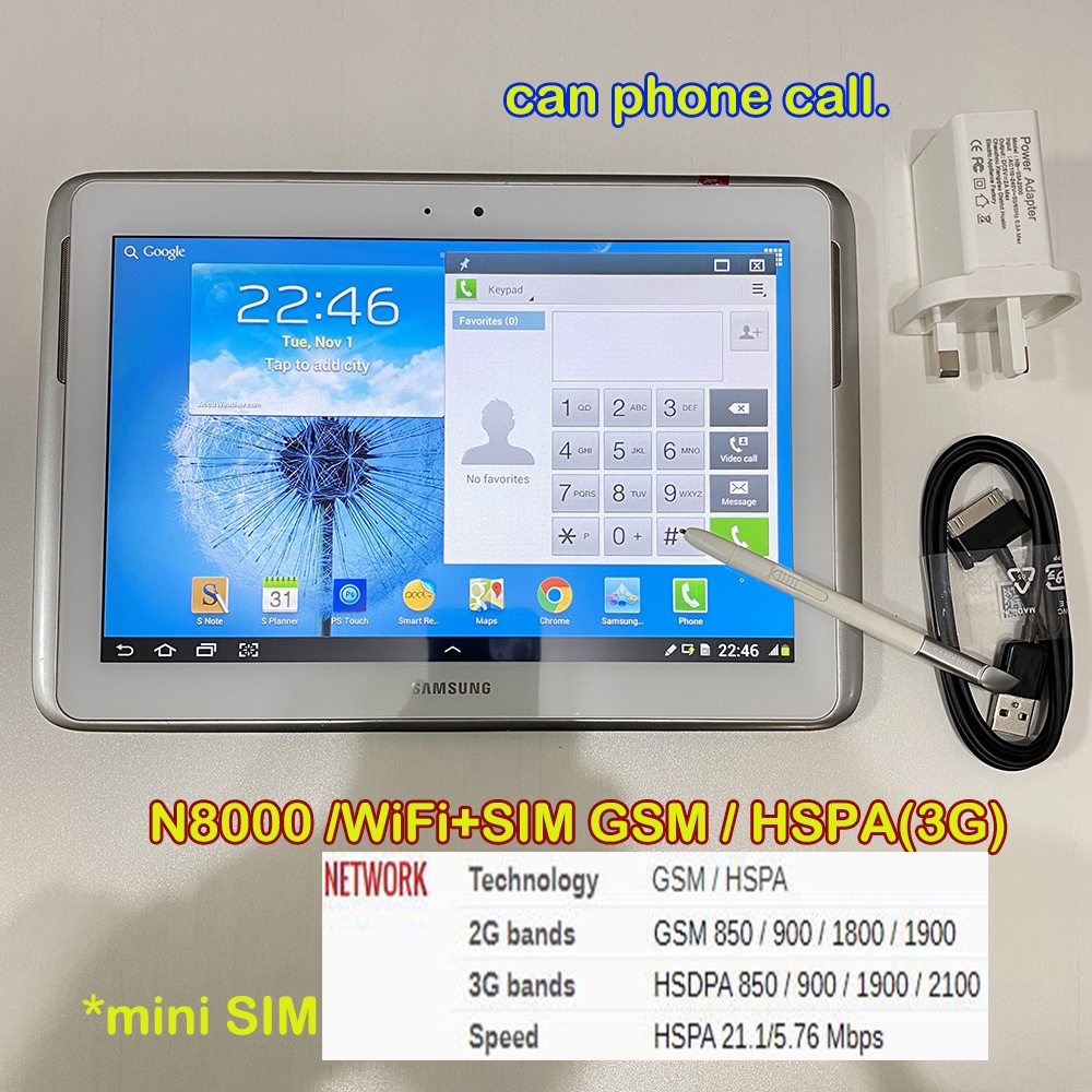 Used Samsung Galaxy Note 10.1 GT-N8000 SIM 3G+WiFi Android 4 Tablet Phone Makes Calls 16GB S Pen Stylus Touch Screen Second Hand