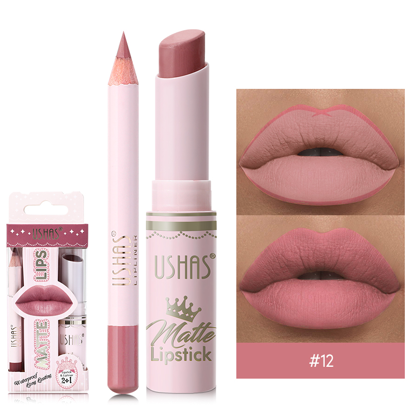 USHAS 12-Color Matte Lip Set: Intense Pigment, Smudge-Proof With A Liner For Defined Looks