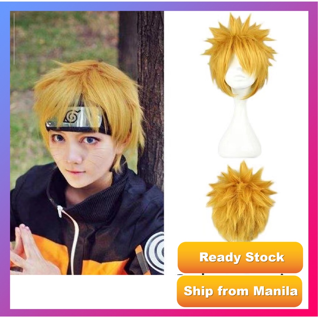 Uzumaki Naruto Wig for Men Kids Naruto Cosplay Anime Halloween Ninja Cosplay Yellow Hair Christmas