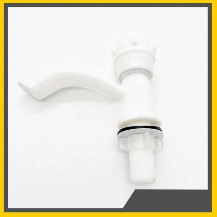 V Horse Plain White PVC Plastic Lavatory Faucet Wash Basin and Double Open Plastic Faucet Turn White