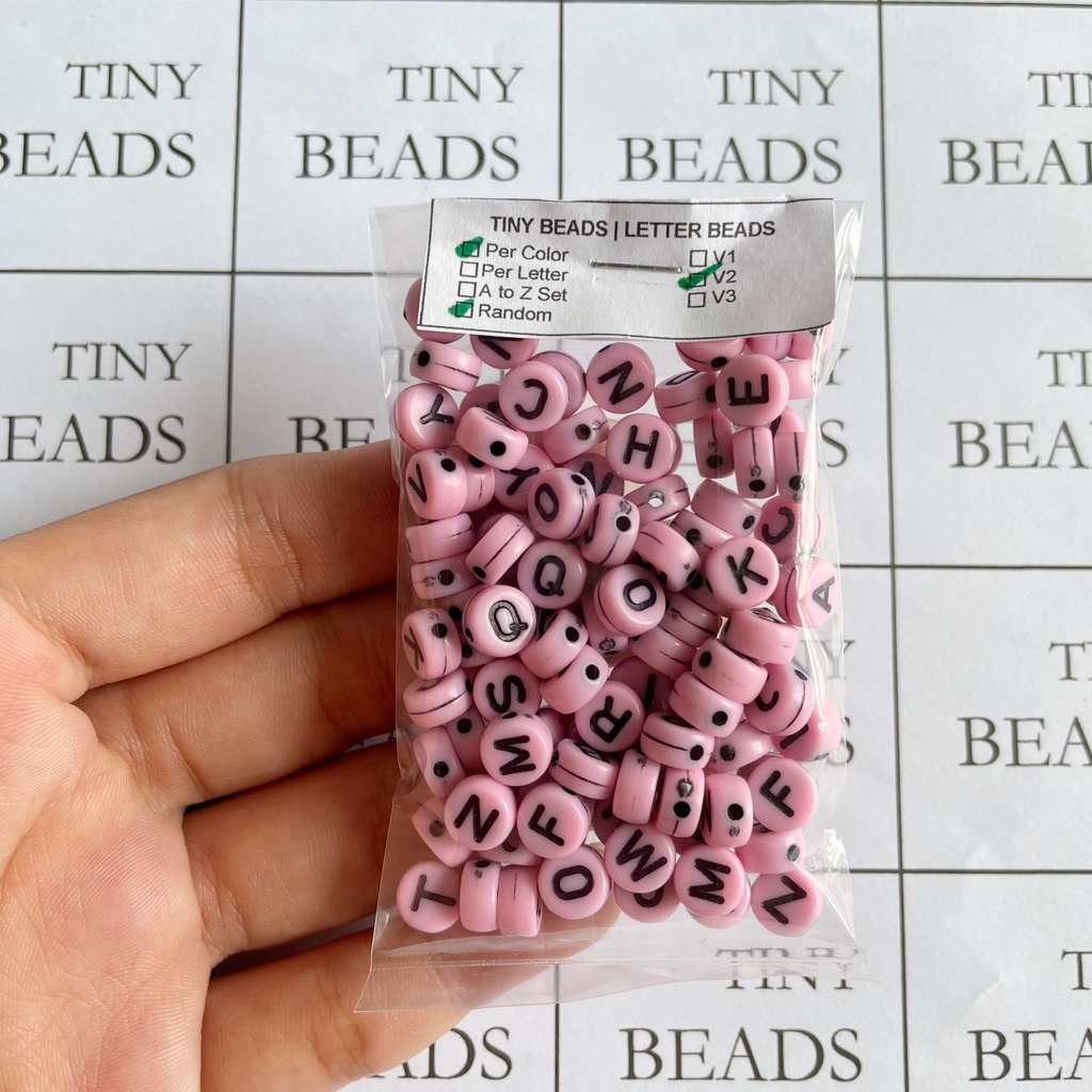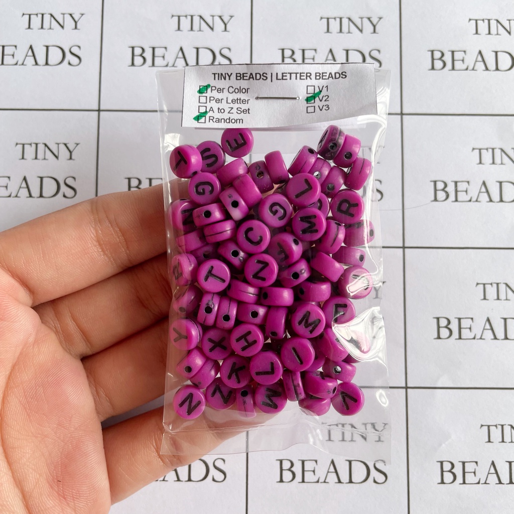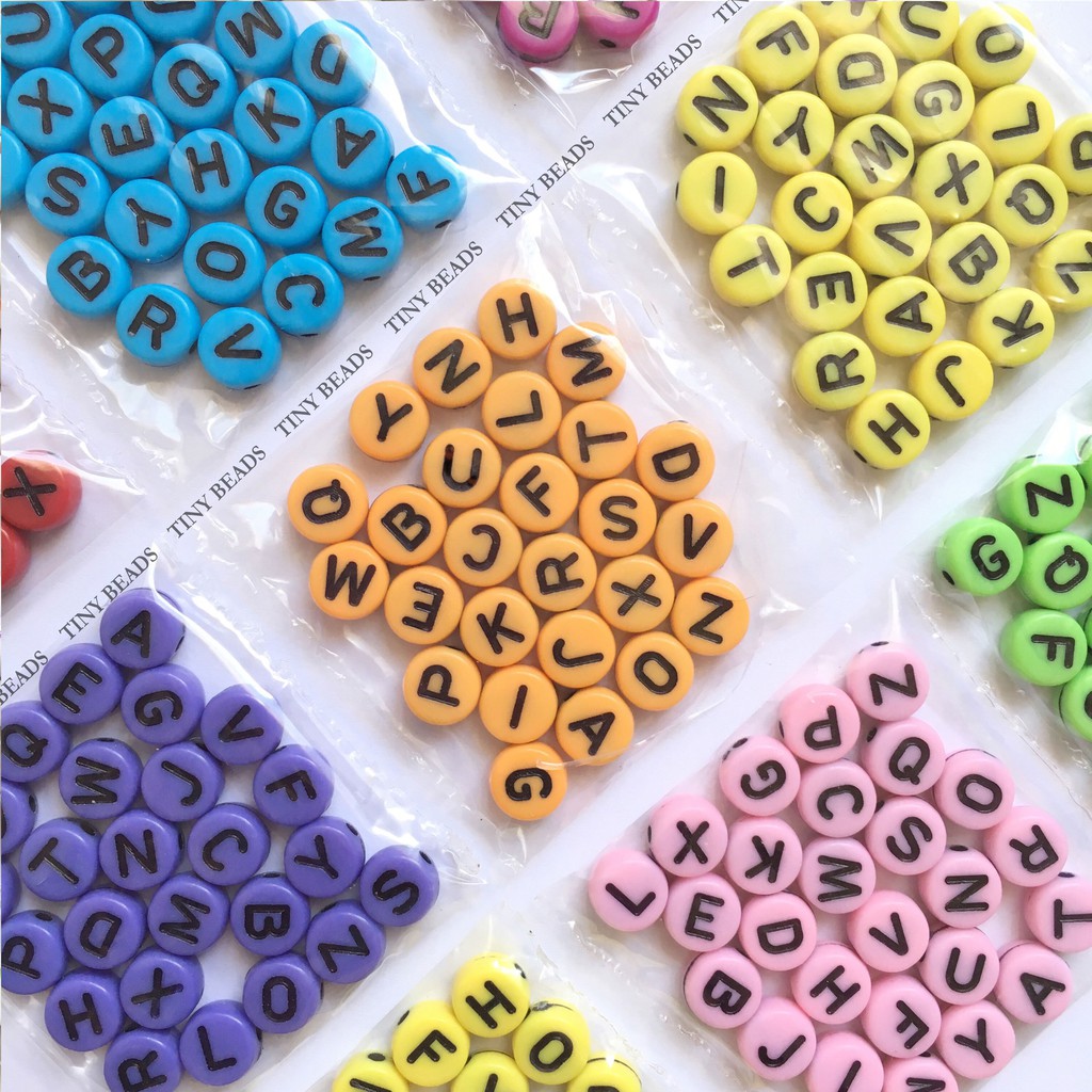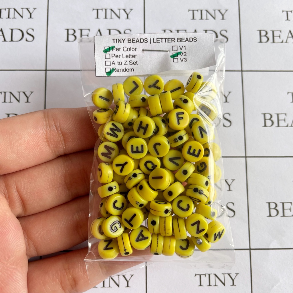 V2 Round COLORED BASE Acrylic Alphabet Letter Beads, A to Z set (26pcs), Random (100pcs)