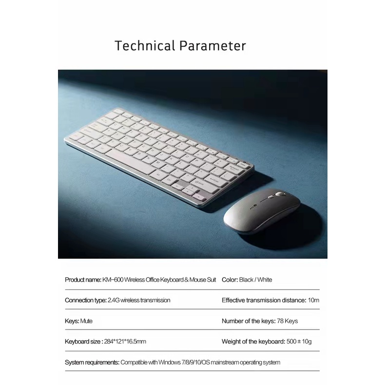 V2S KM600 Keyboard And Mouse Gaming Wireless Keyboard Ultra-Thin Keyboard And Mouse Set