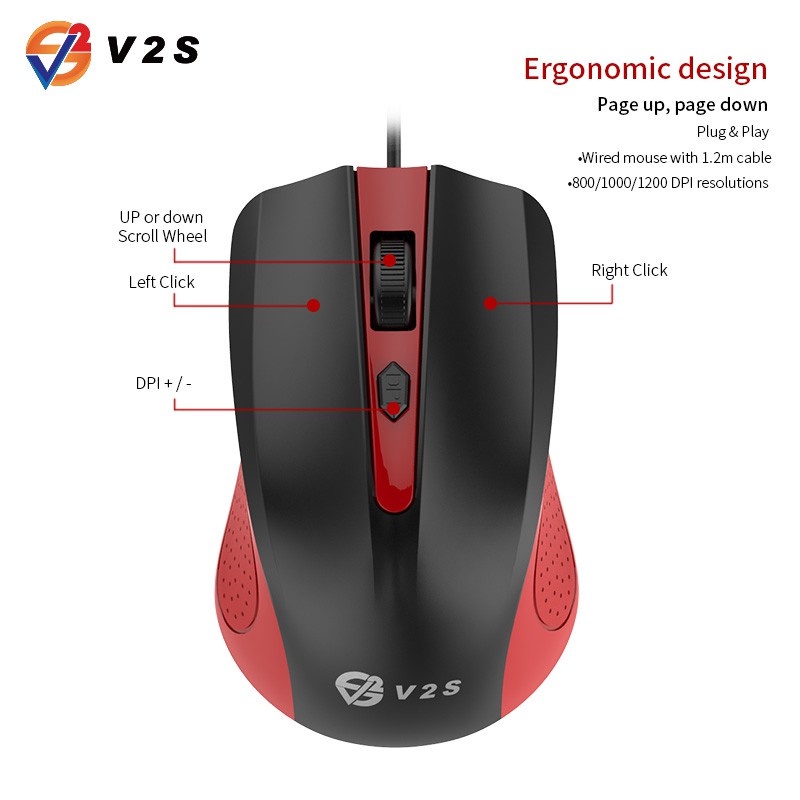 V2S MS-101 1000 DPI Symmetric Dust-Resistant Wheel Plug & Play USB Optical Wired Mouse