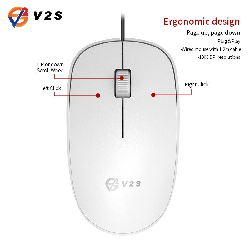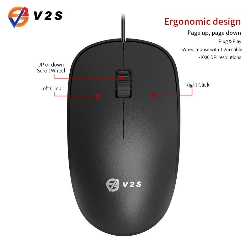 V2S MS102 Wired Gaming Mouse Office Wired RGB Lightweight Design Mouse