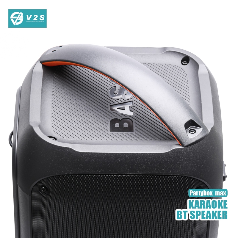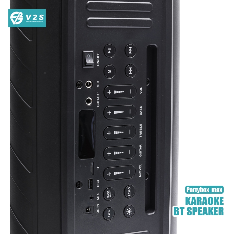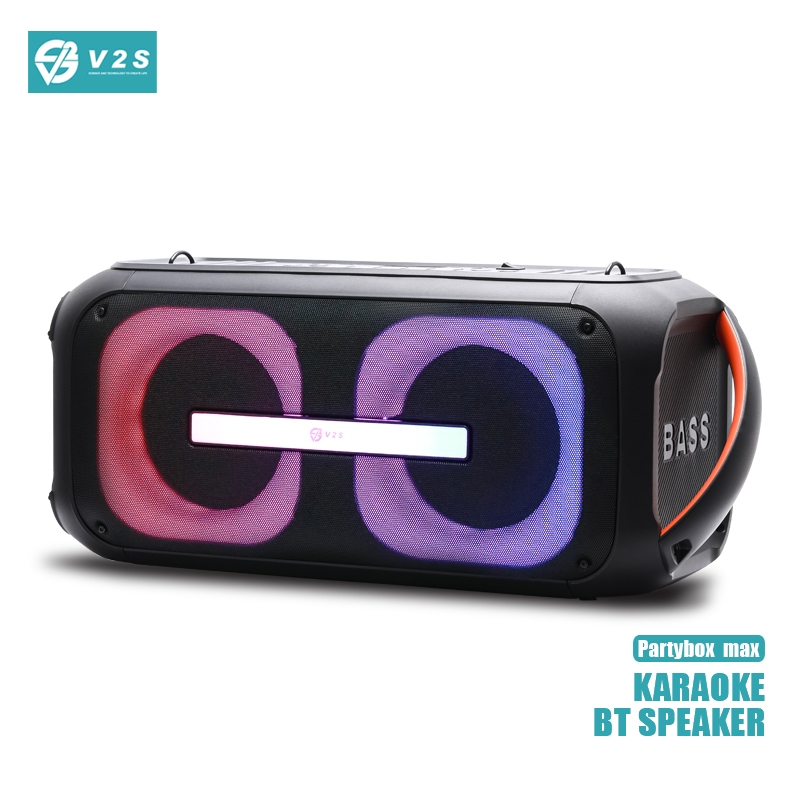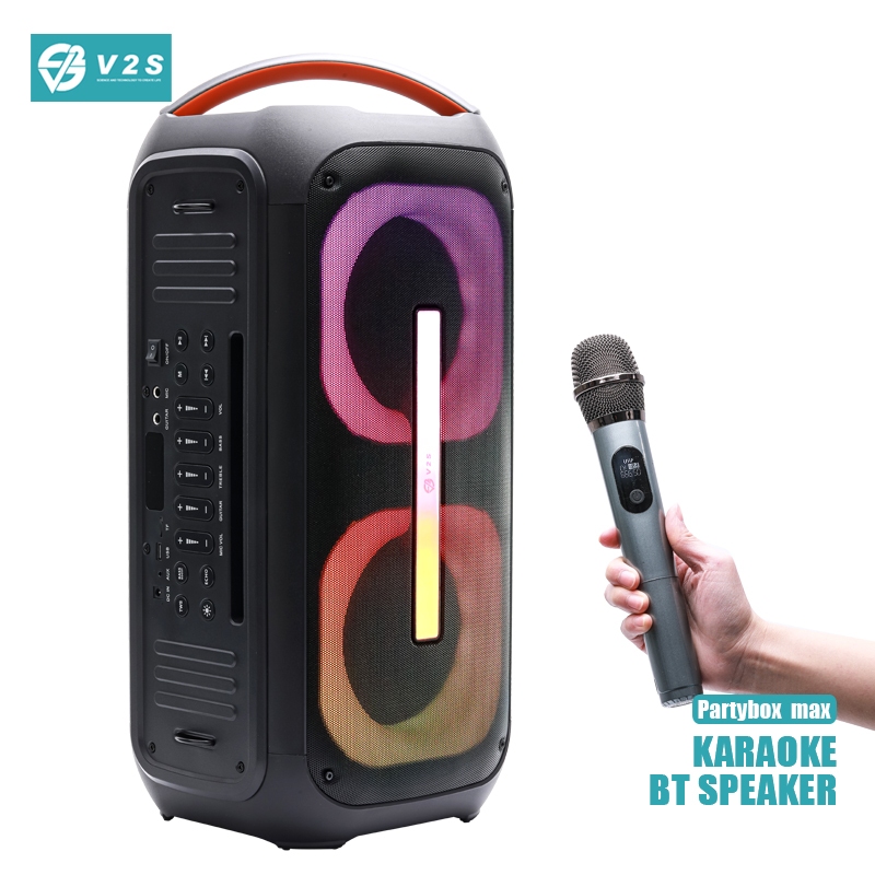 V2S Partybox Max Wireless Jukebox Karaoke Speaker Splash proof Design, Fire Light Duo Mic W/ Sling