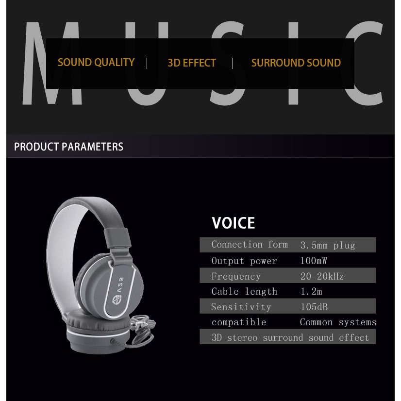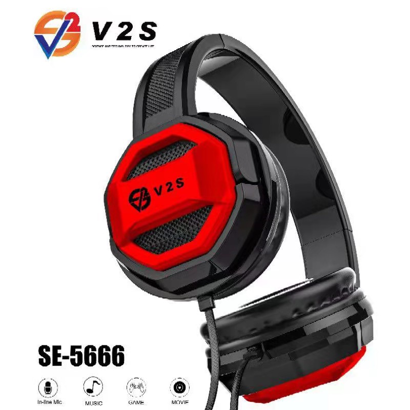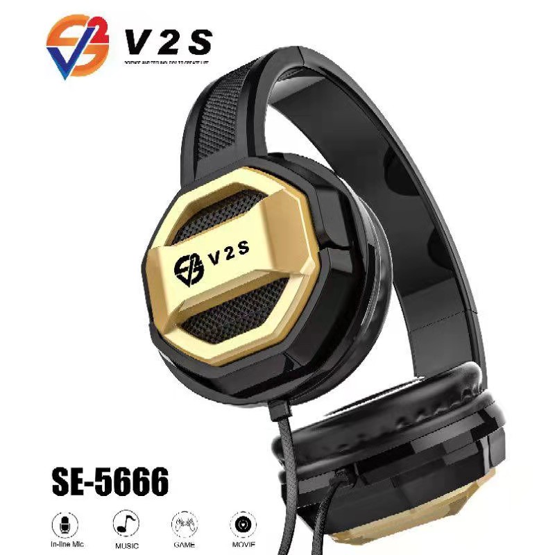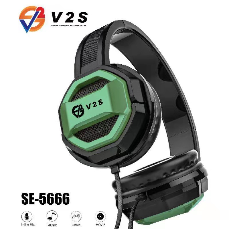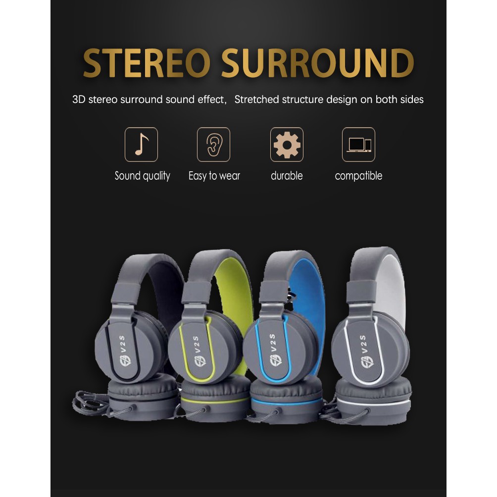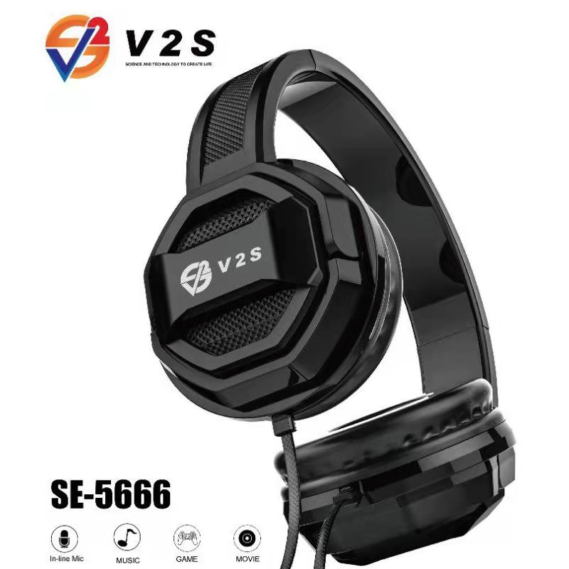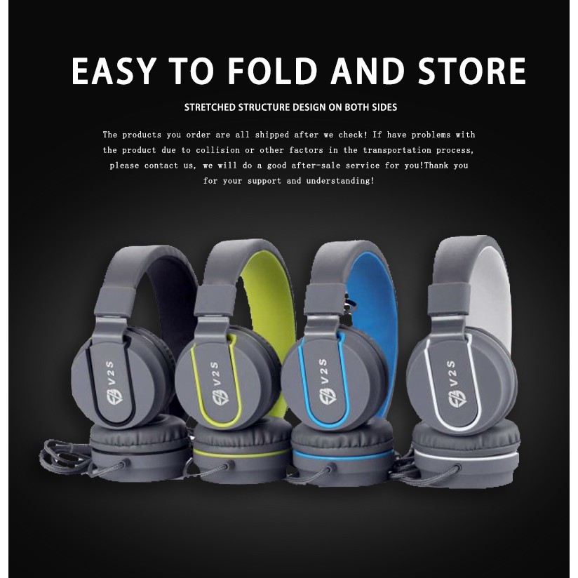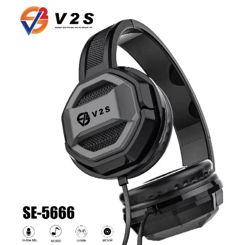 V2S SE5222 Collapsible 3.5mm Standard Wired Headphone Foldable Adjustable Headset