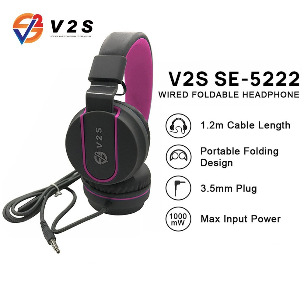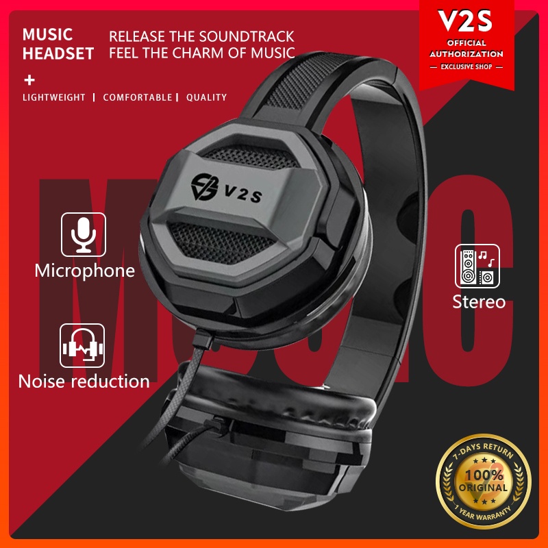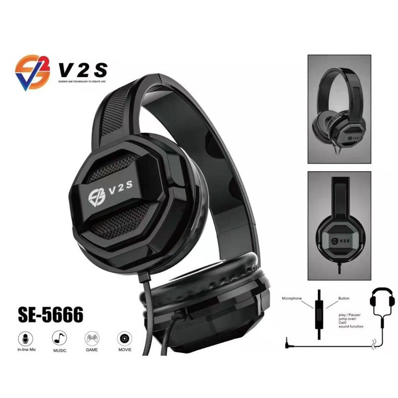 V2S SE5666 Universal Stereo Hi-fi Headphone 3.5mm Jack Wired PC Computer Laptop Music Game Headphone
