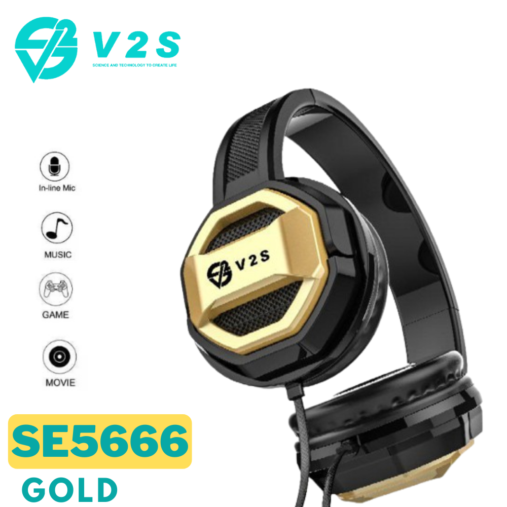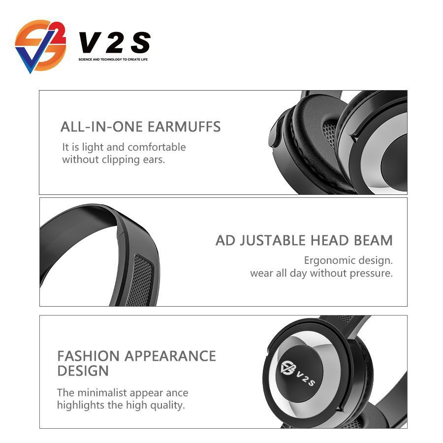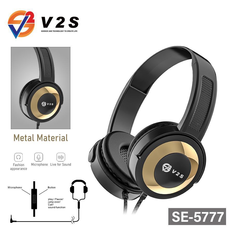 V2S SE5777 Foldable Wired Adjustable Headset Super Bass HIFI Stereo Headphone