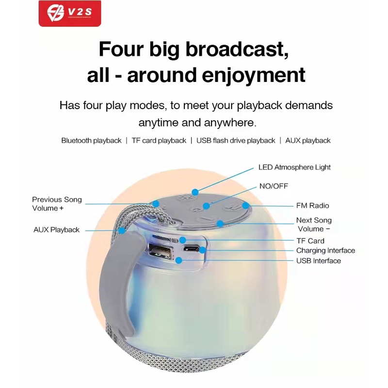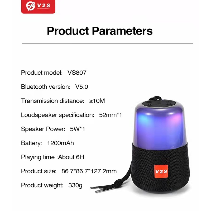 V2S VS807 Wireless Bluetooth Speaker Rechargeable Support USB TF Card Player FM Radio