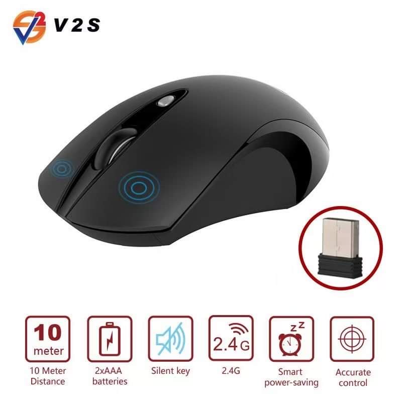 V2S WM202 (BLACK) Wireless Mouse 2.4G Accurate Control Gaming Smart Power Saving Mouse