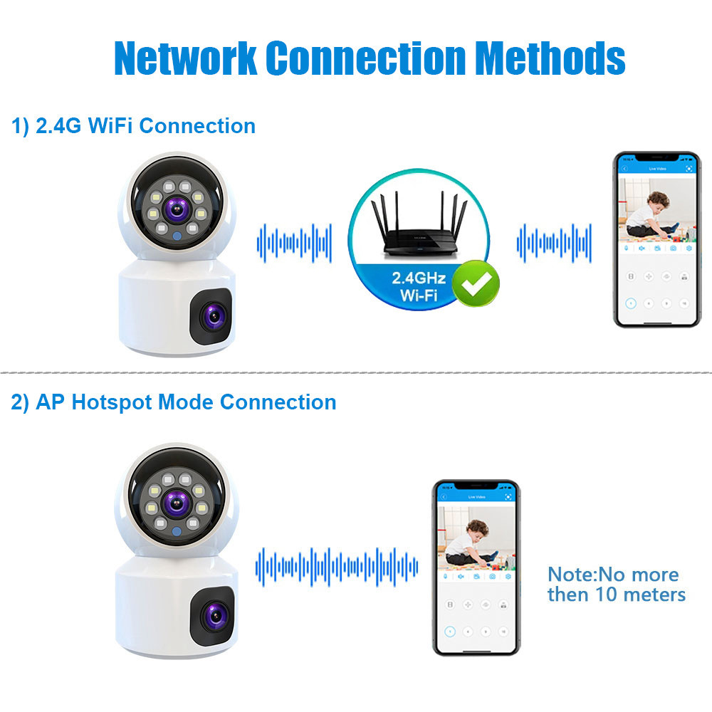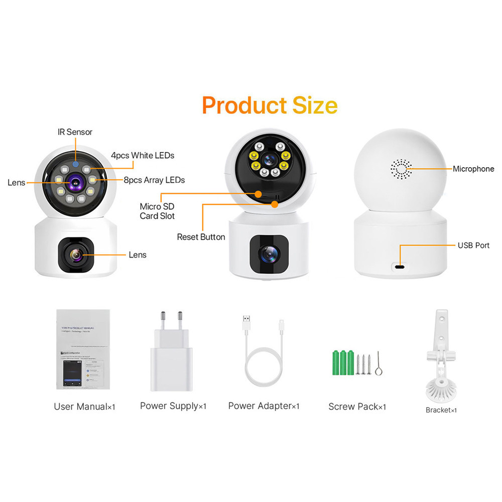 V380 CCTV Camera Wifi Wireless Dual Lens 1080P IP Cameras Smart Night Vision PTZ Alarm Home Camera
