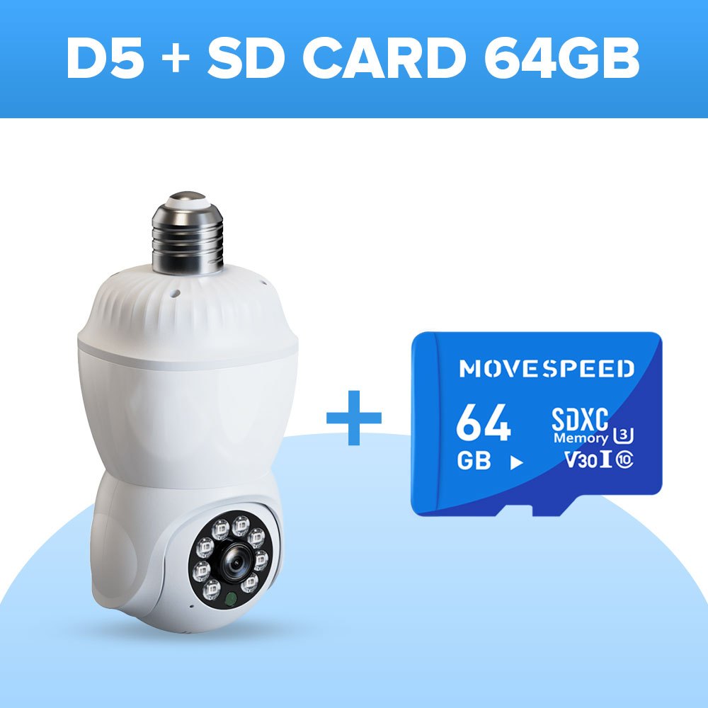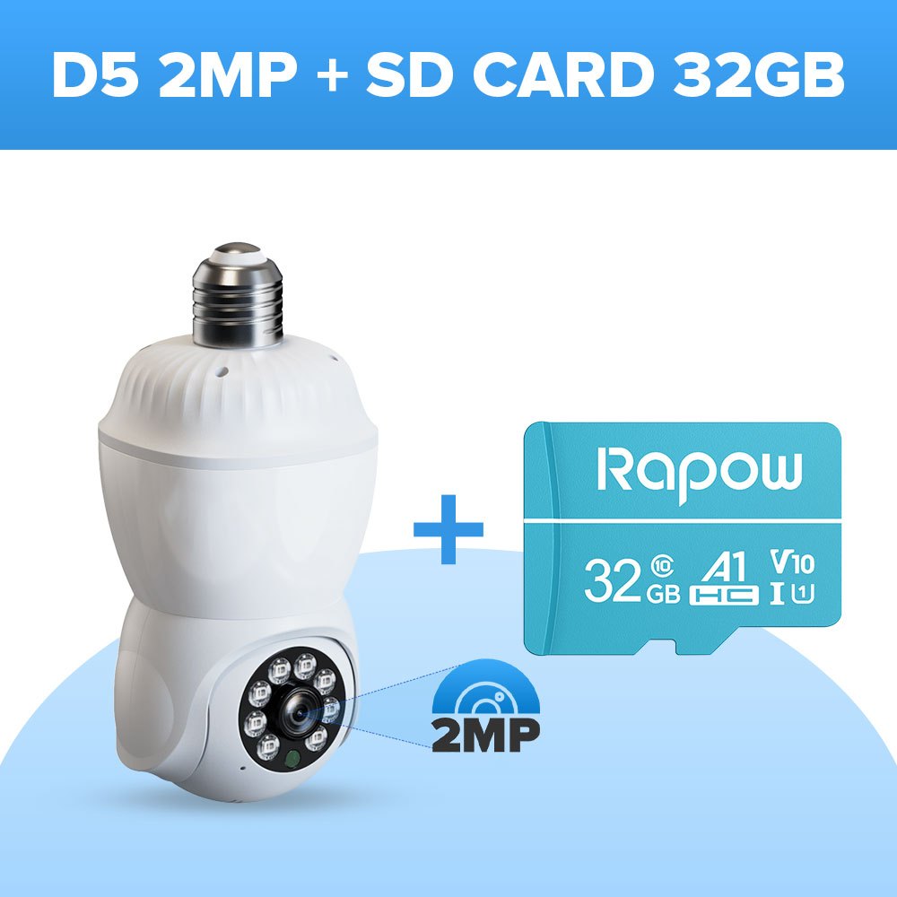V380 D5 2MP PTZ Smart Full Color WiFi Light Bulb Security Camera with Motion Detection and N-Vision