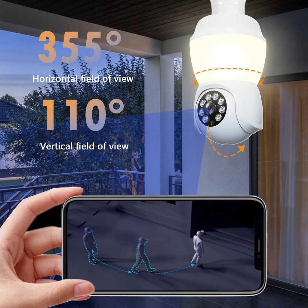 V380 D5 2MP PTZ Smart Full Color WiFi Light Bulb Security Camera with Motion Detection and N- Vision