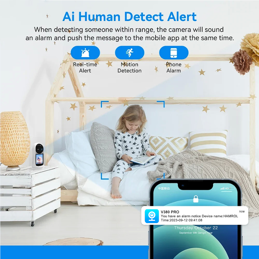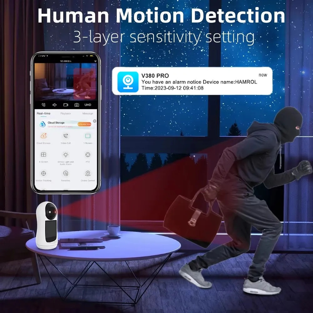 V380 PRO 3MP IPS HD Screen Wireless CCTV Indoor Home WIFI Connection Voice Assistant Bidirectional Video Call Cry Sound Detection 360 PTZ Motion Tracking Night Vision IP Camera