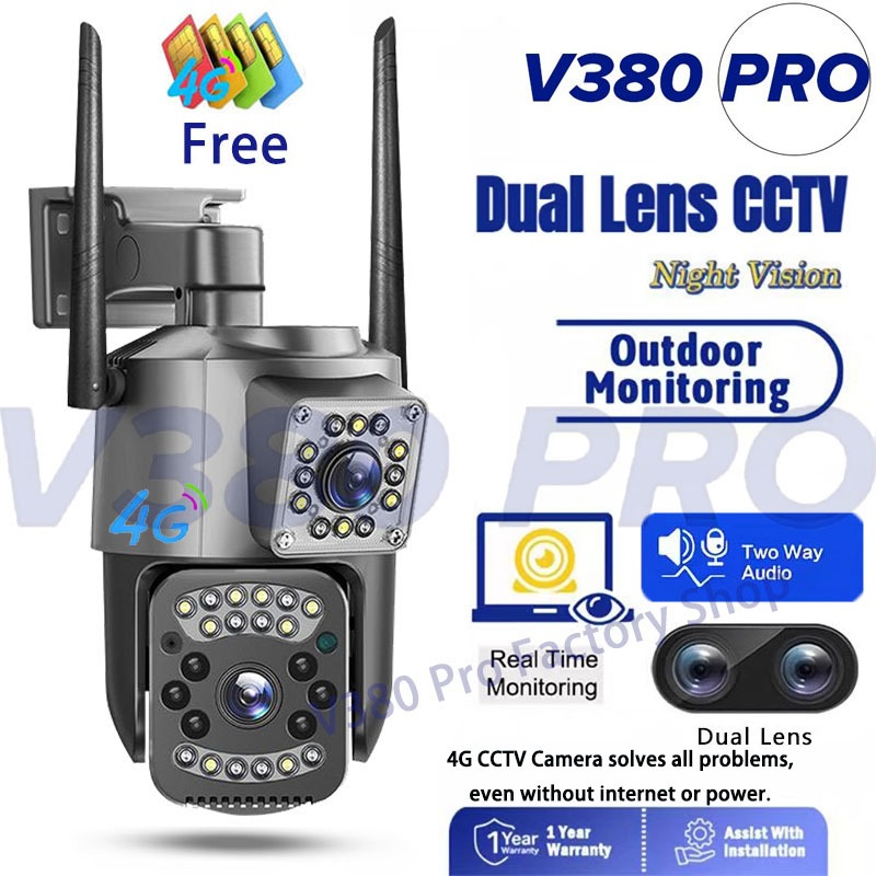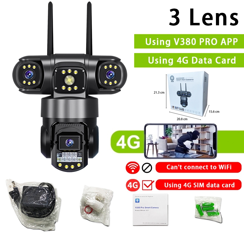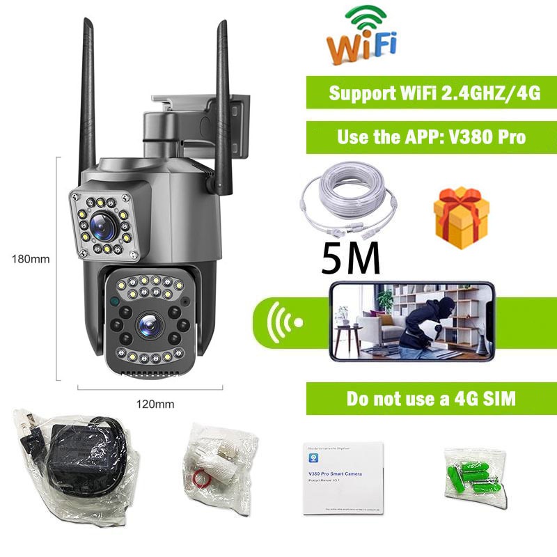 V380 Pro 4G SIM CCTV 8MP 4K Camera Outdoor Dual Lens Dual Screen 10X Optical Zoom Auto Tracking