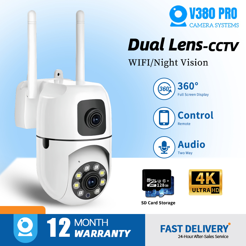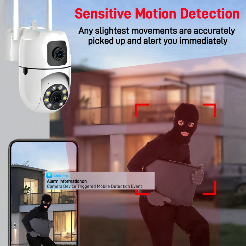 V380 Pro Dual Lens CCTV Auto Tracking WiFi Outdoor Camera Waterproof Full Color Night Vision