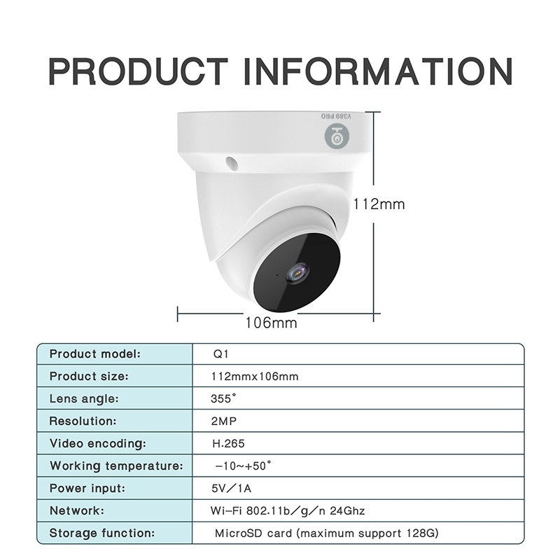 V380 Q1 2MP indoor PTZ CCTV IP camera Wireless Wifi night vision two way audio security camera