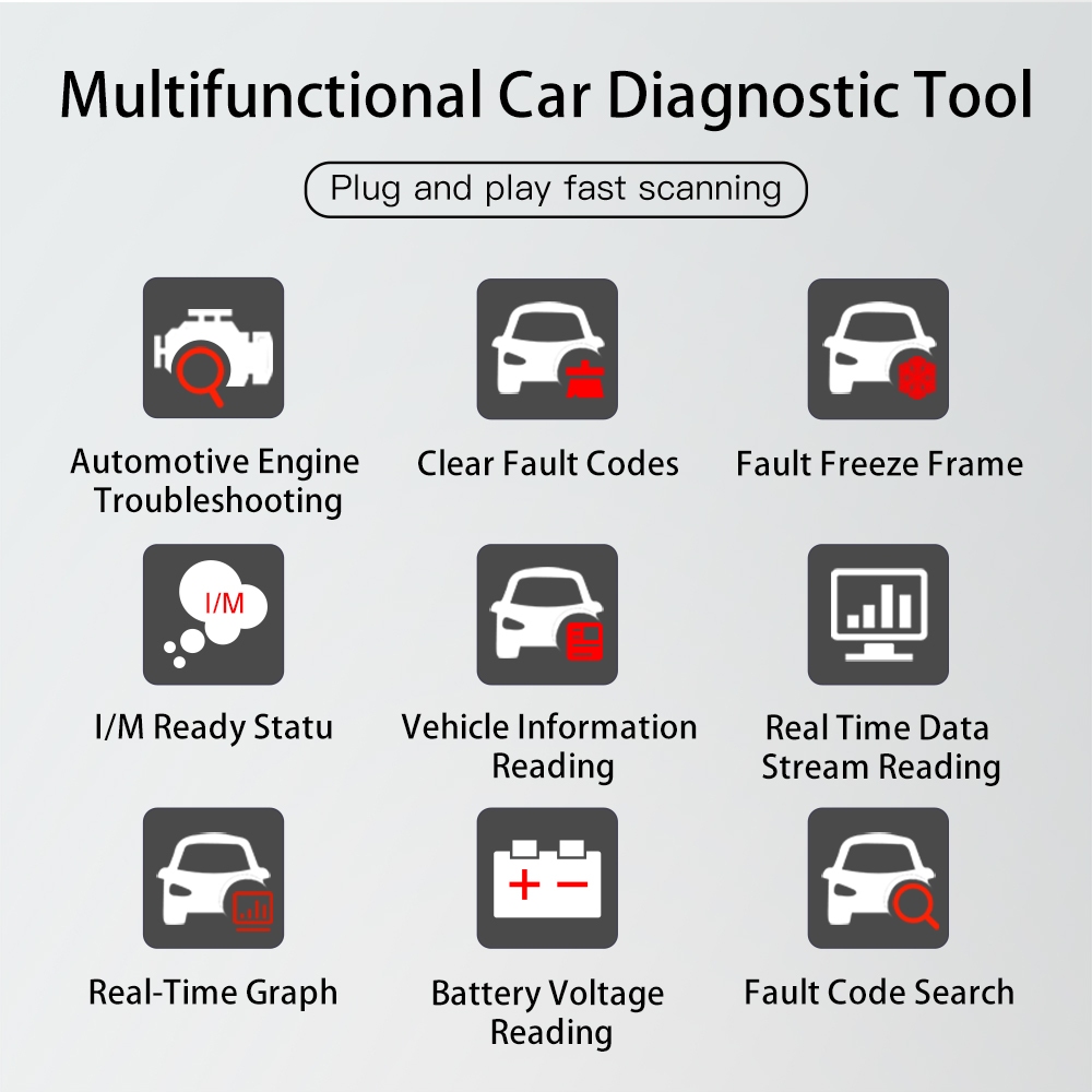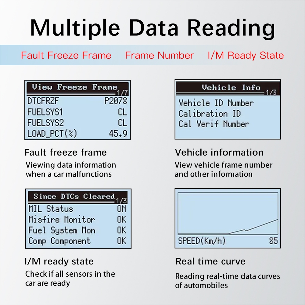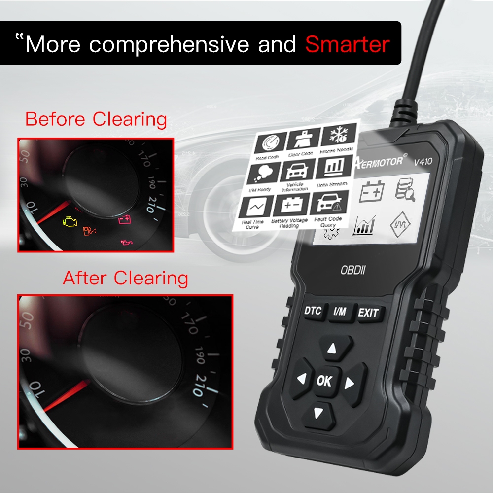 V410 Automotive Fault Detector OBD2/EOBD Protocol/Read Vehicle Parameters/Supports 8 Languages/LCD Display Screen