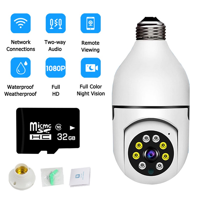 V720 Pro CCTV Bulb Camera Auto Tracking 1080P Night Vision Wireless WiFi 360 Panoramic PTZ IP Camera