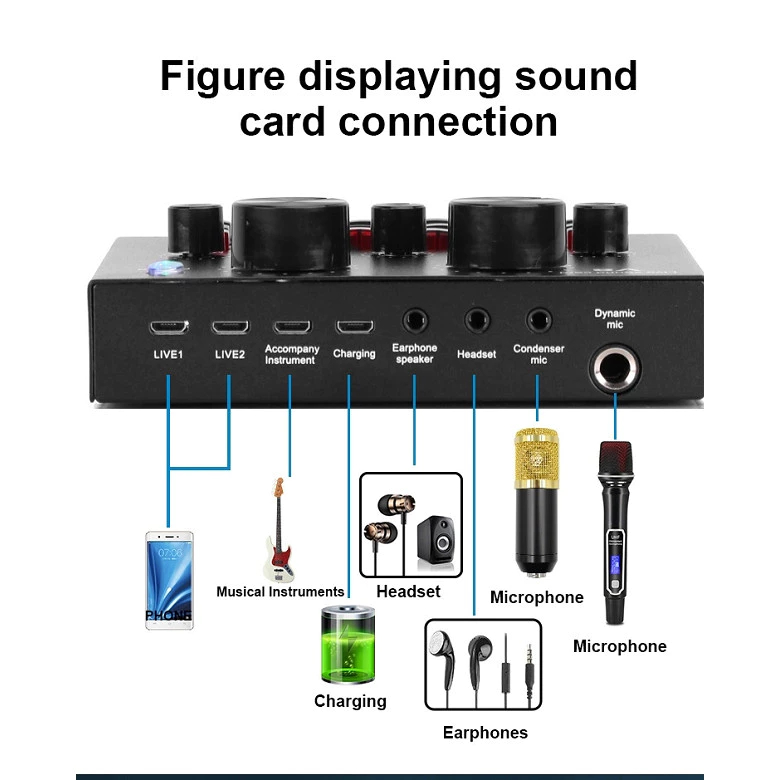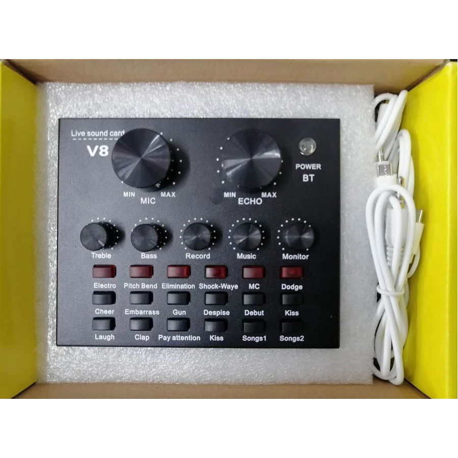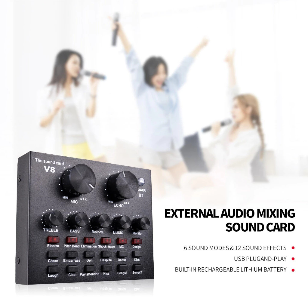 V8 Sound Card Audio Auto Tune Karaoke Microphone Live Broadcast Sound Card for Mobile Phone