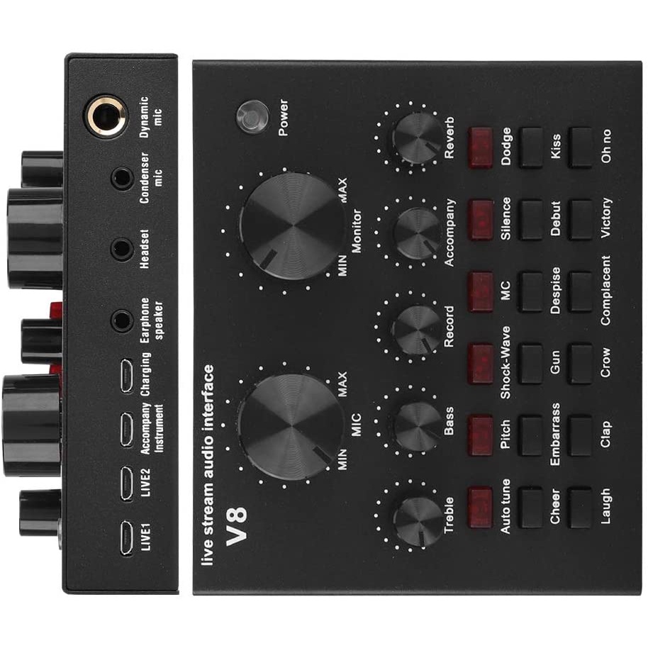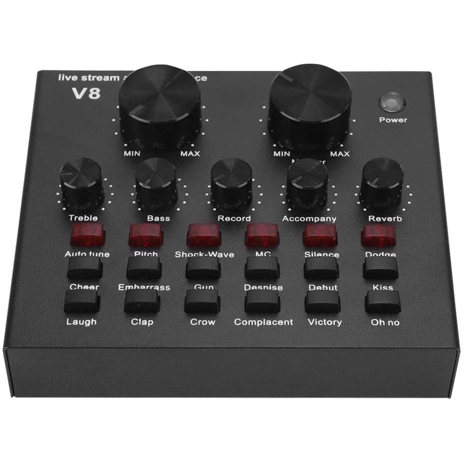 V8 Sound Card Audio Interface External USB Live Broadcast Microphone Sound Card for Computer PC