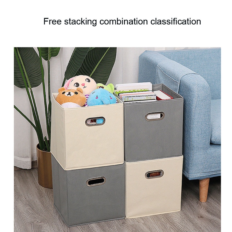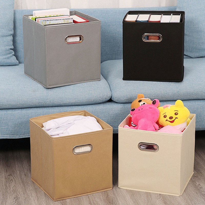 VA Cloth Cube Storage Boxes with Double Metal Handle Collapsible Folding Basket Wardrobe Storage Box for Clothes Toys St