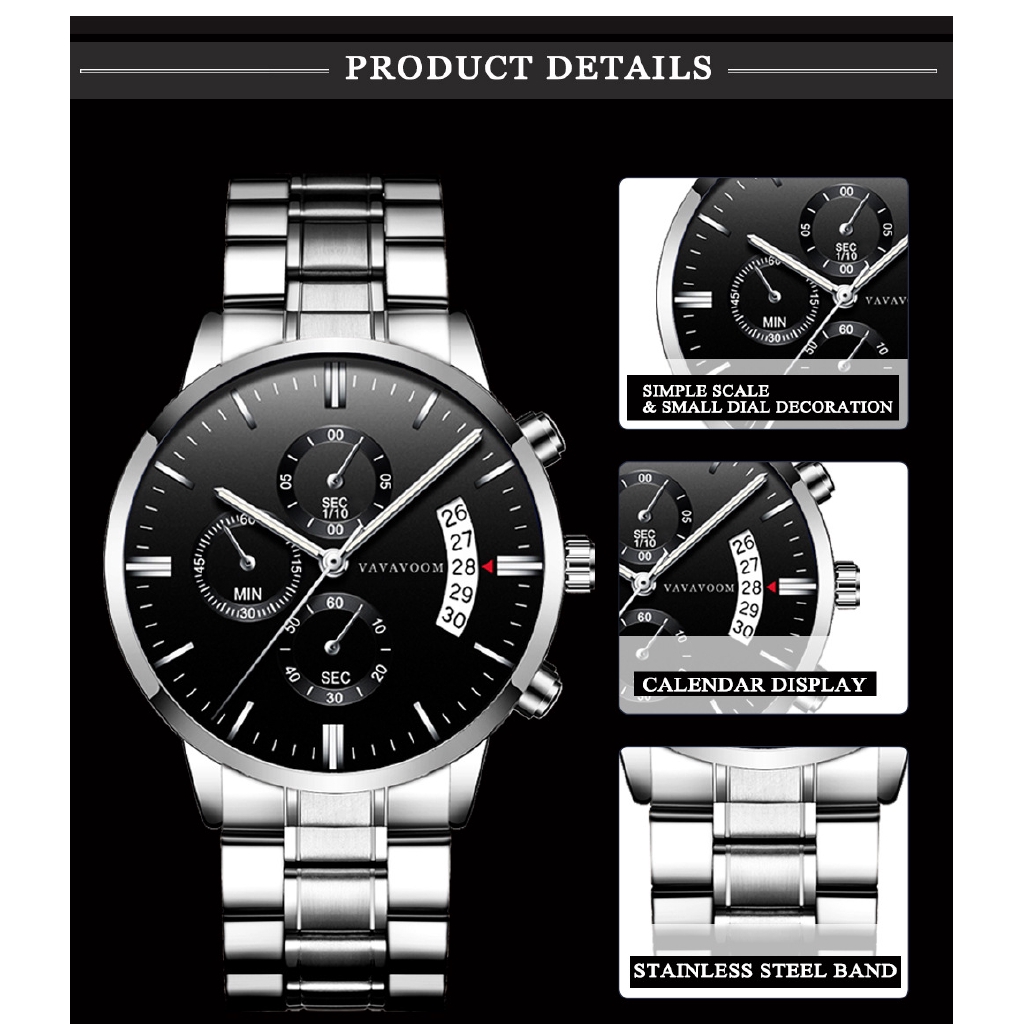 VA VA VOOM Men's Watches Stainless Steel Calendar Quartz Watch VA-214