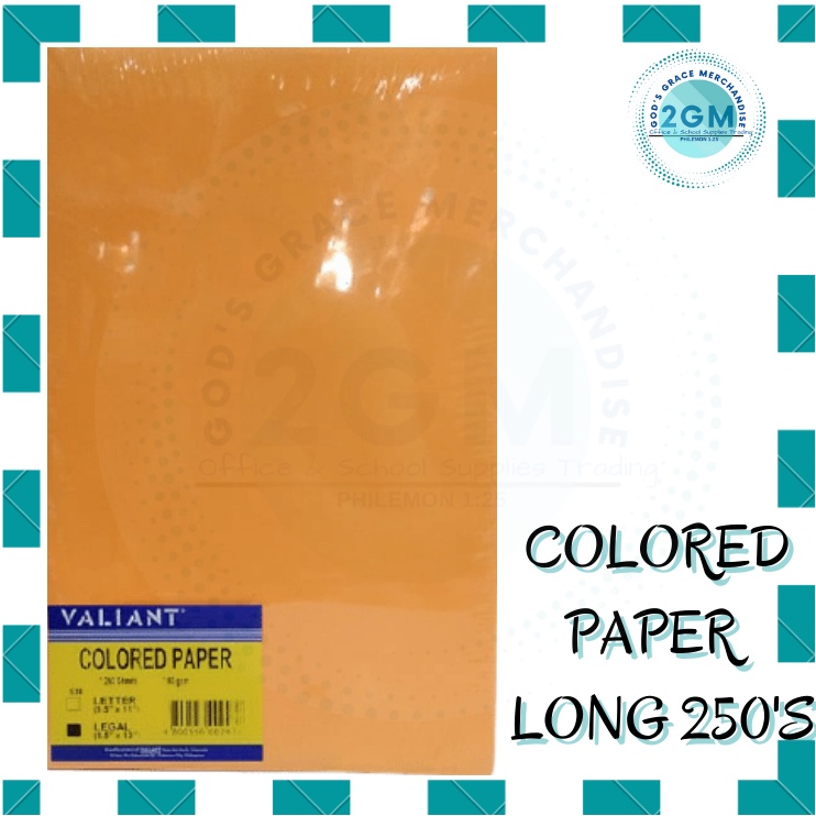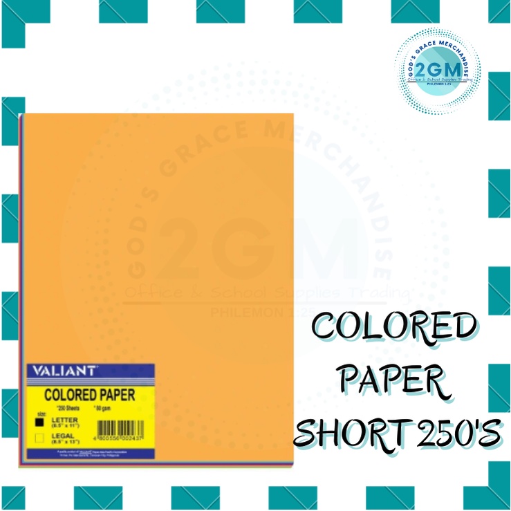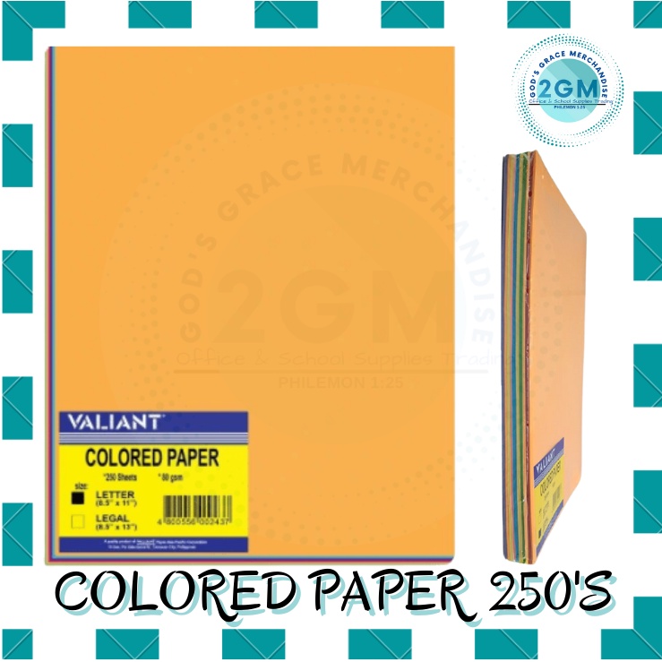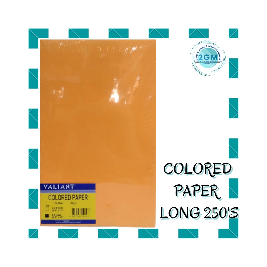VALIANT COLORED PAPER 250'S, ASSORTED COLOR PER REAM, SIZES: SHORT & LONG
