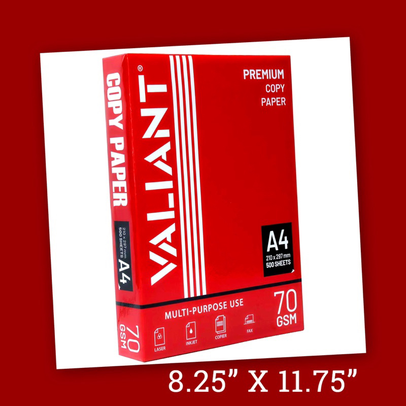 VALIANT Copy paper 70 gsm premium multipurpose paper 500 sheets letter, A4 and Legal size per ream
