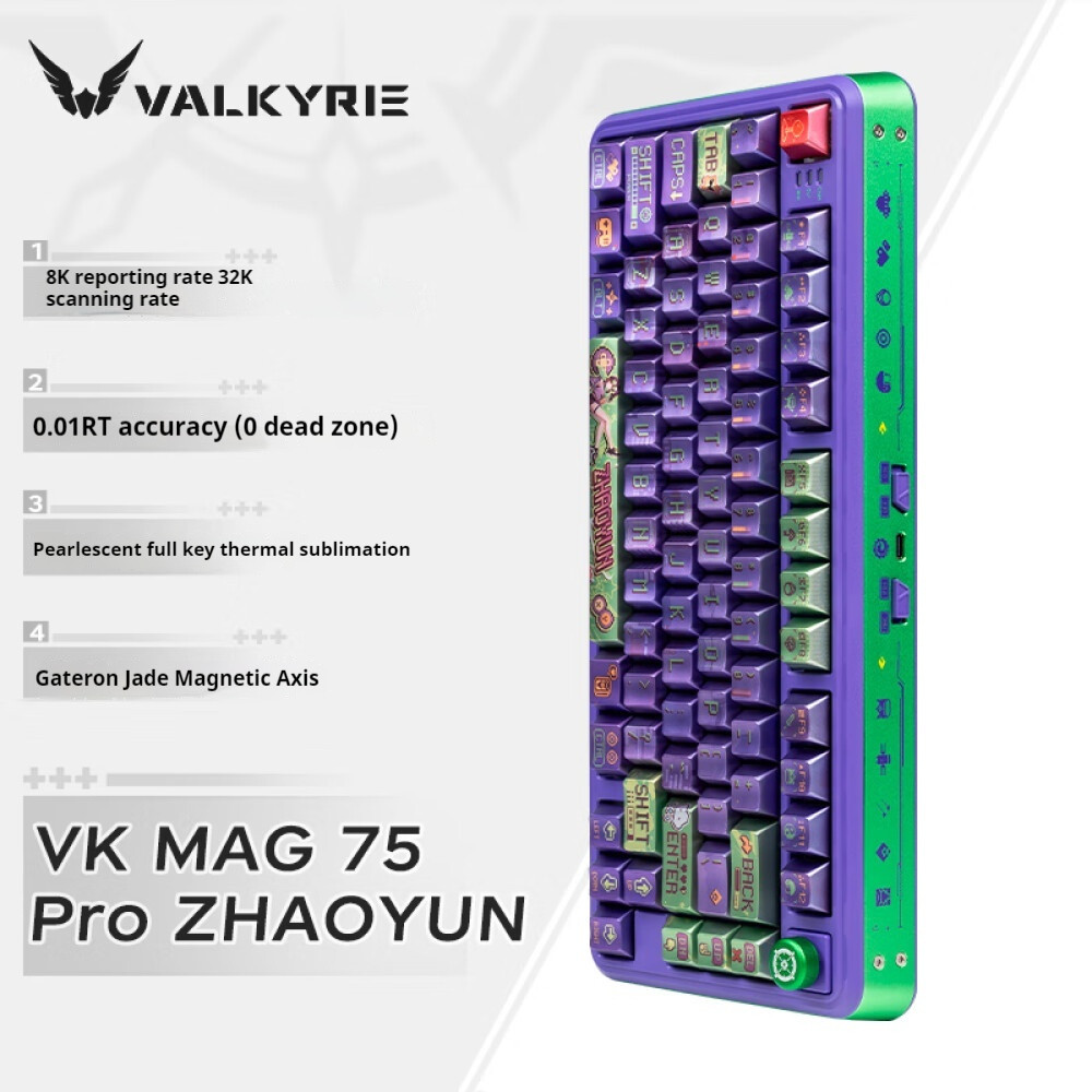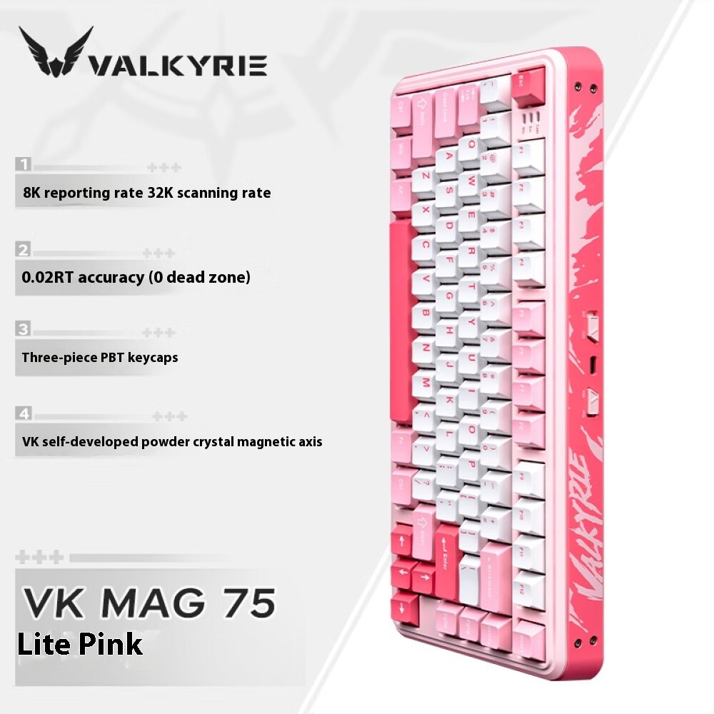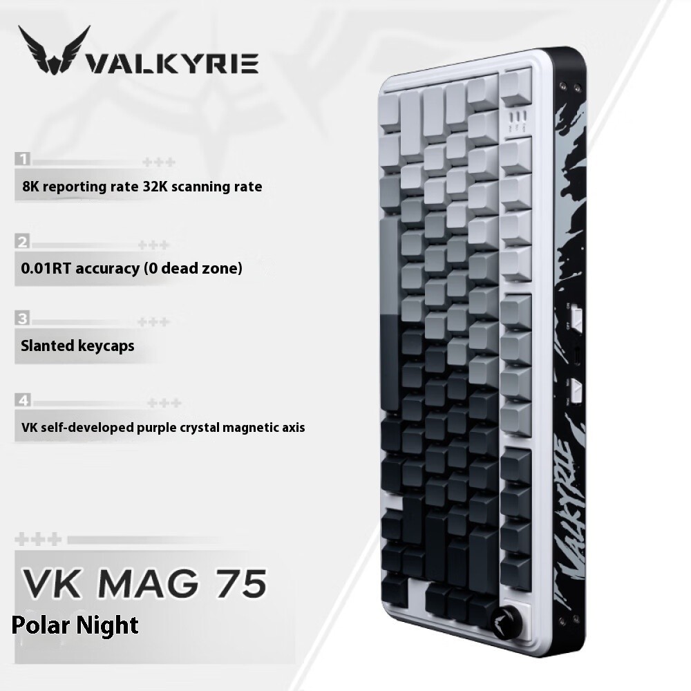 VALKYRIE VK MAG 75 gaming magnetic axis wired gaming keyboard, 8K return rate, 32K scan rate, supports hot plugging, SOCD, RT0.01MM, 0.125ms ultra-low latency magnetic keyboard