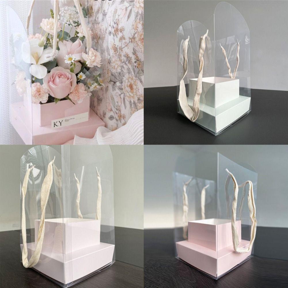 NAESV Handheld Flower Box, Transparent Paper Box Bouquet Wrapping Bag, Creative Handbag Portable Packing Material Flower Bag Valentine Day