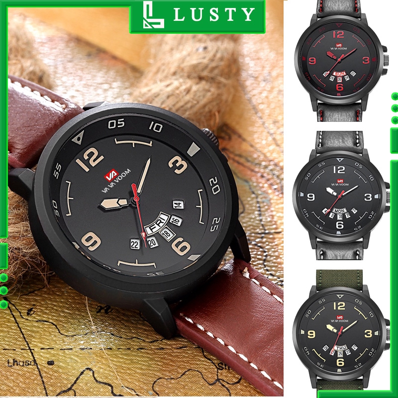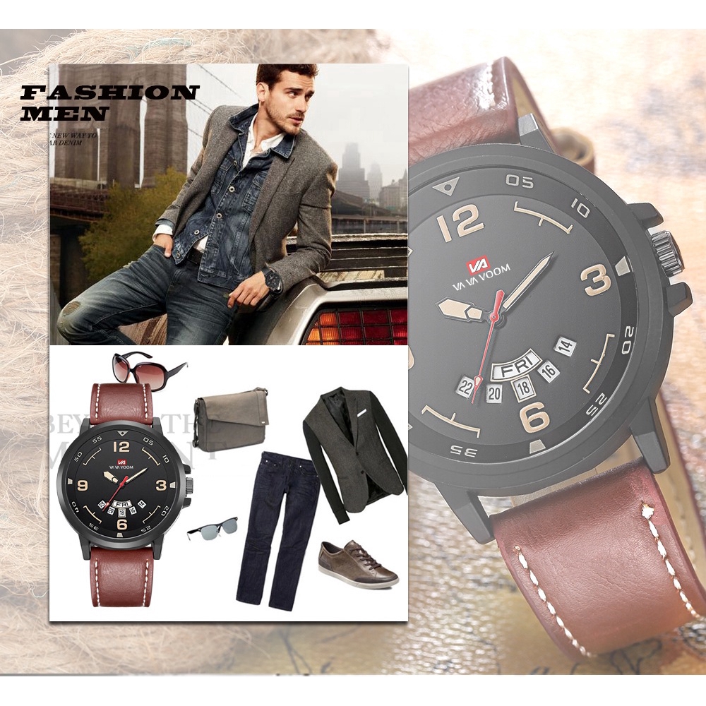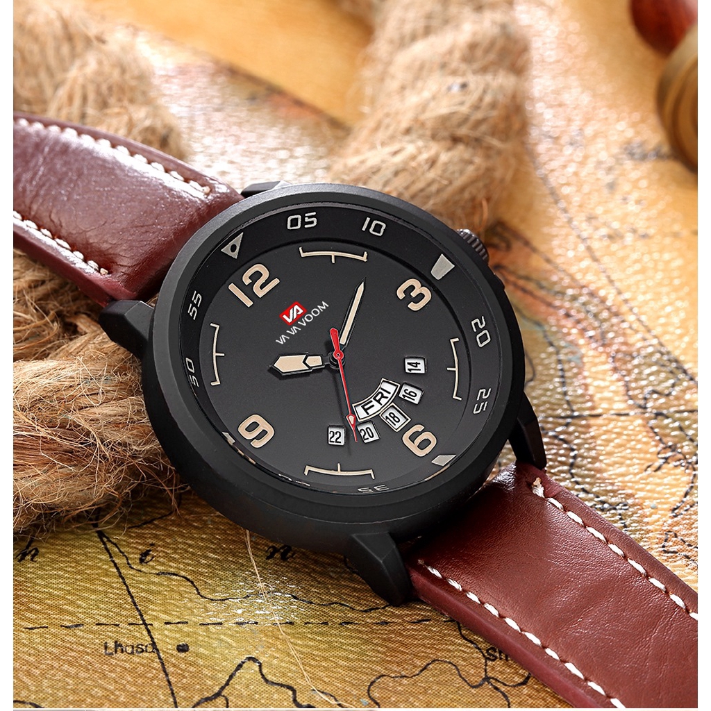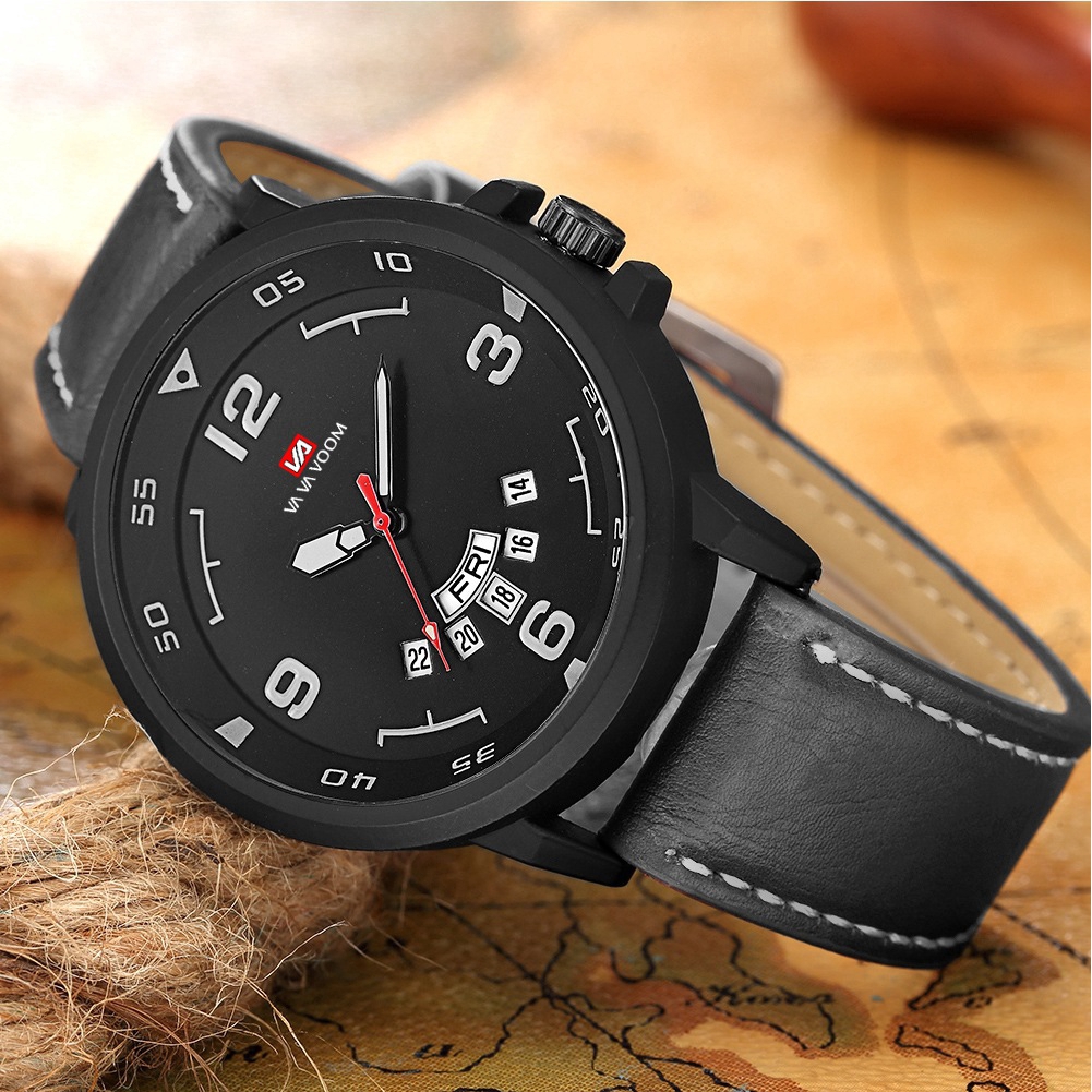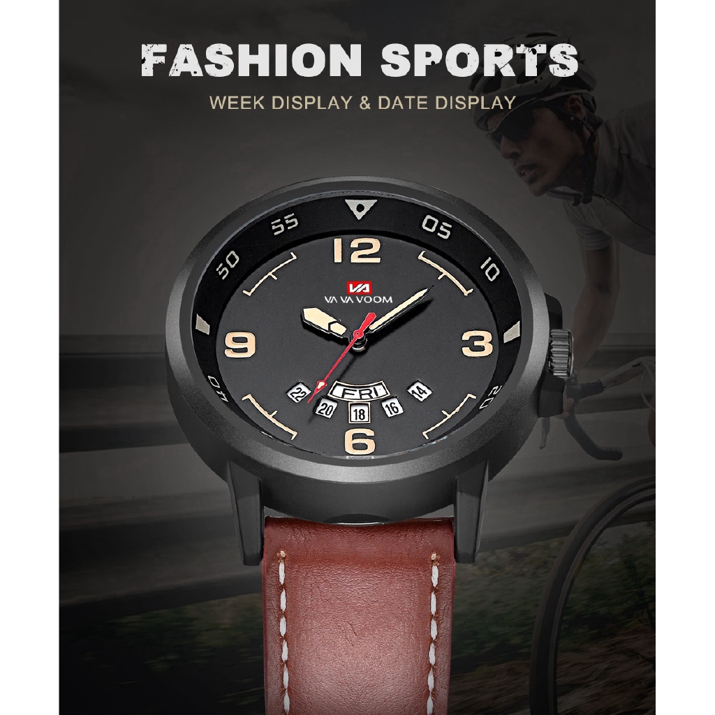 VAVAVOOM Quartz Watch for men - Waterproof Watch Leather strap Calendar Fashion sports watch VA-208