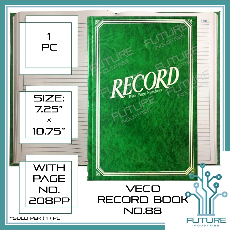 VECO Record Book No. 88 With Page Number Green Record Book 150PP 200PP 300PP 500PP [Future Ind]