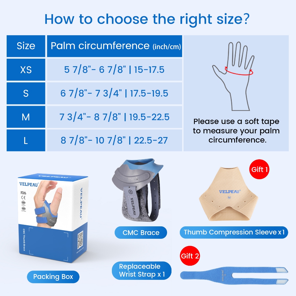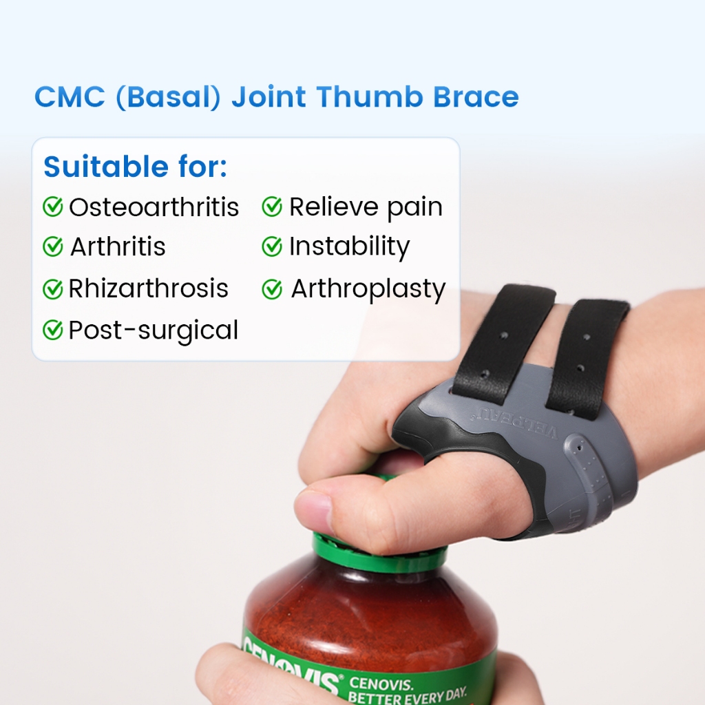 VELPEAU CMC Thumb Brace for Osteoarthritis - with Shape-memory Restriction Splint, CMC Joint Stabilizer, Basal Thumb Arthritis Pain Relief and Support for Women and Men