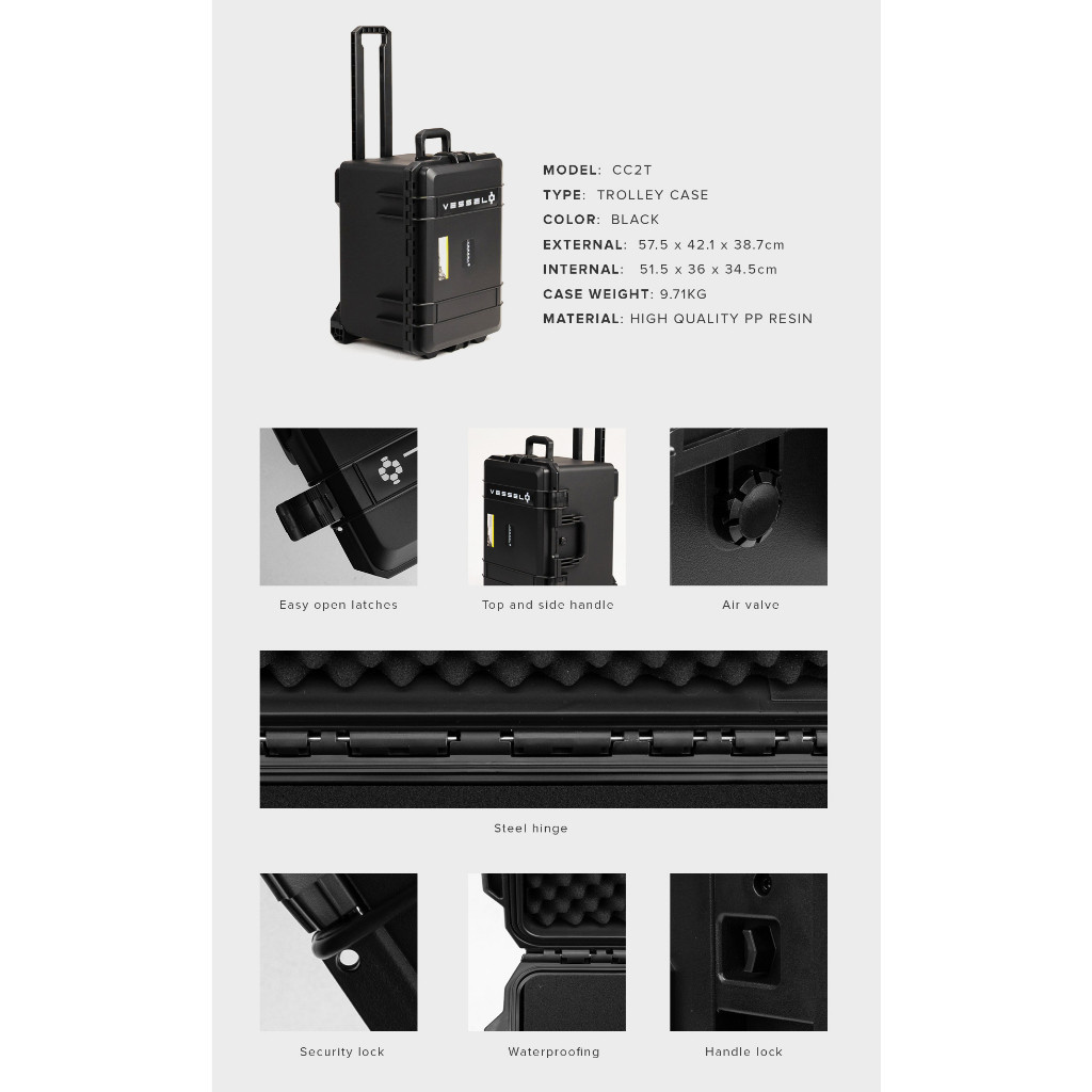 VESSEL CC2 CC2T Trolley Hard Case for Photography Equipment Gear Case Large Size | Hard Case Only