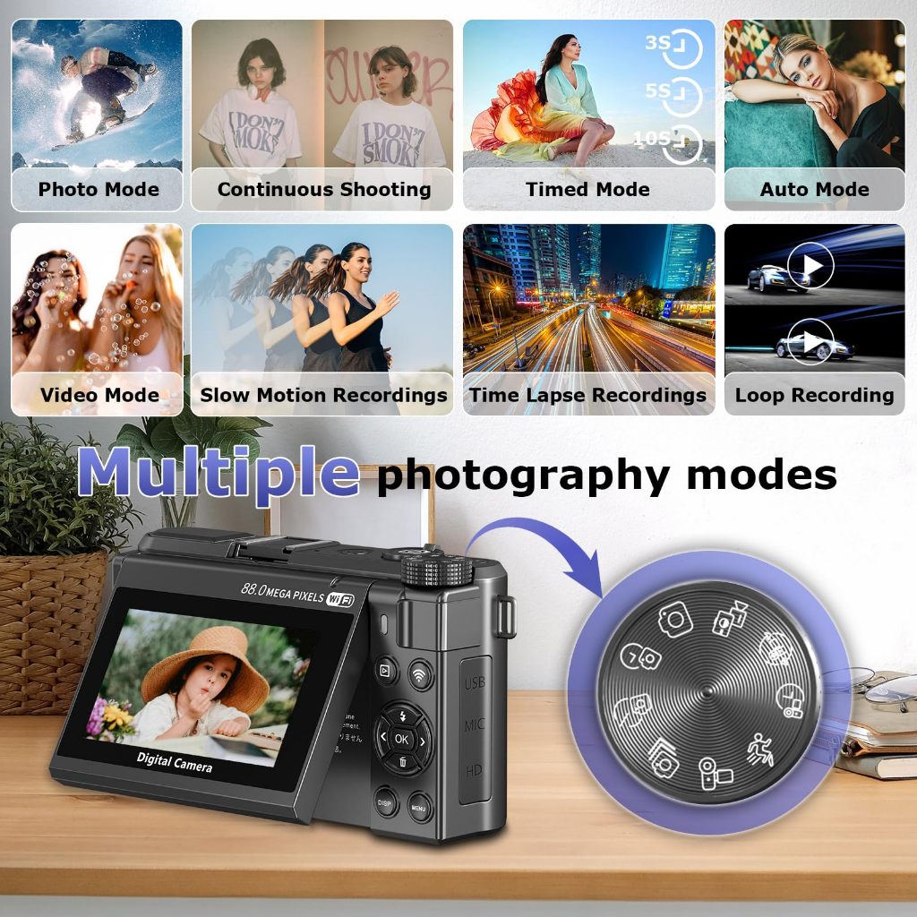 VETXI -30 8K photography digital camera - 88MP WiFi video recording camera autofocus camera
