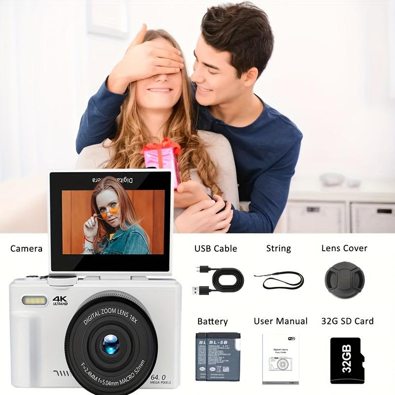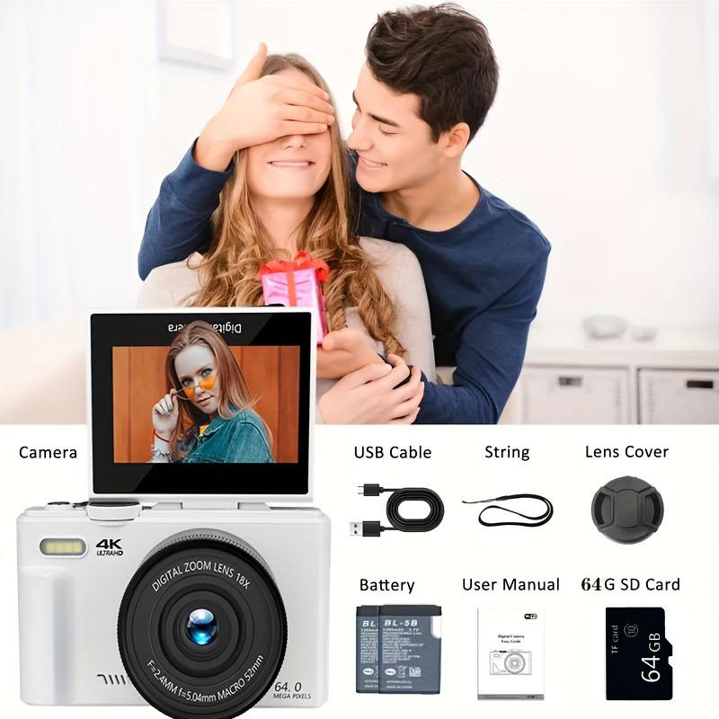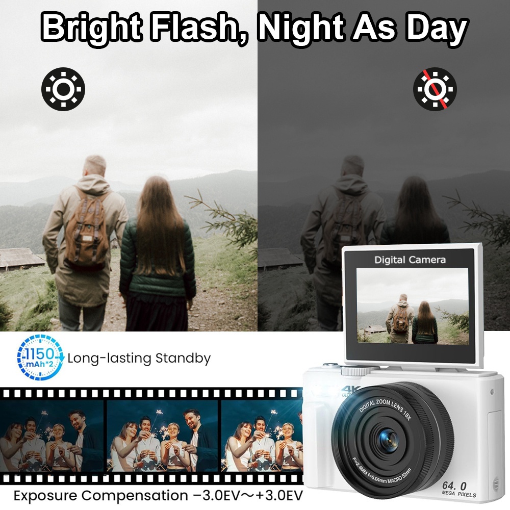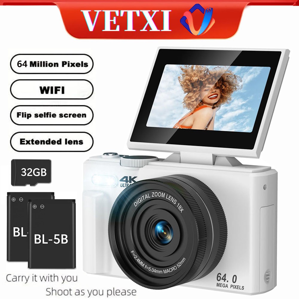 VETXI-8 digital camera 4K 18X digital zoom retro Vlog recorder YouTube 180 ° flip screen selfie