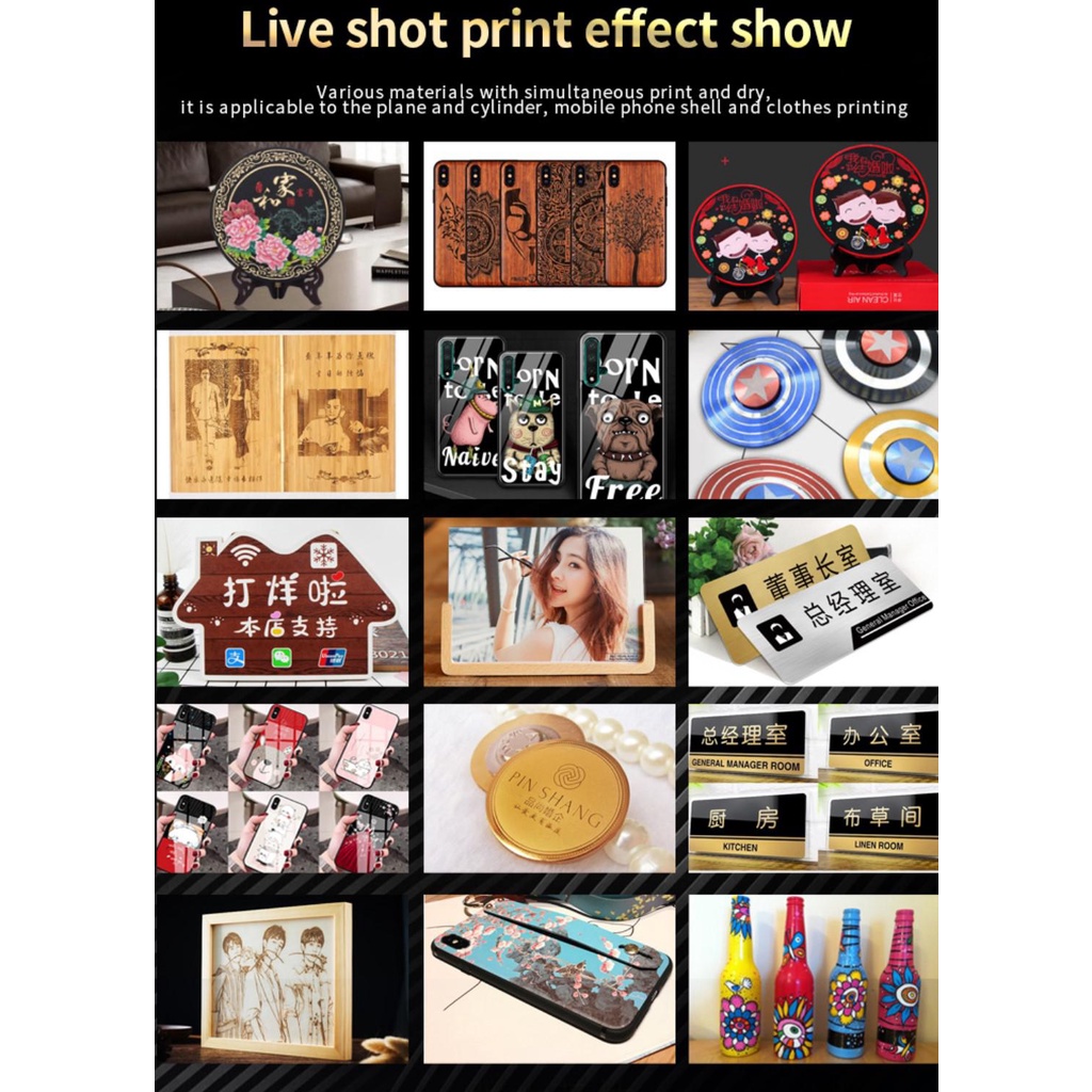 VEVOR Upgraded A3-19 UV Printer Flatbed Automatic Bottle Printer Surface Printer 6 Colors A3 A4 Si