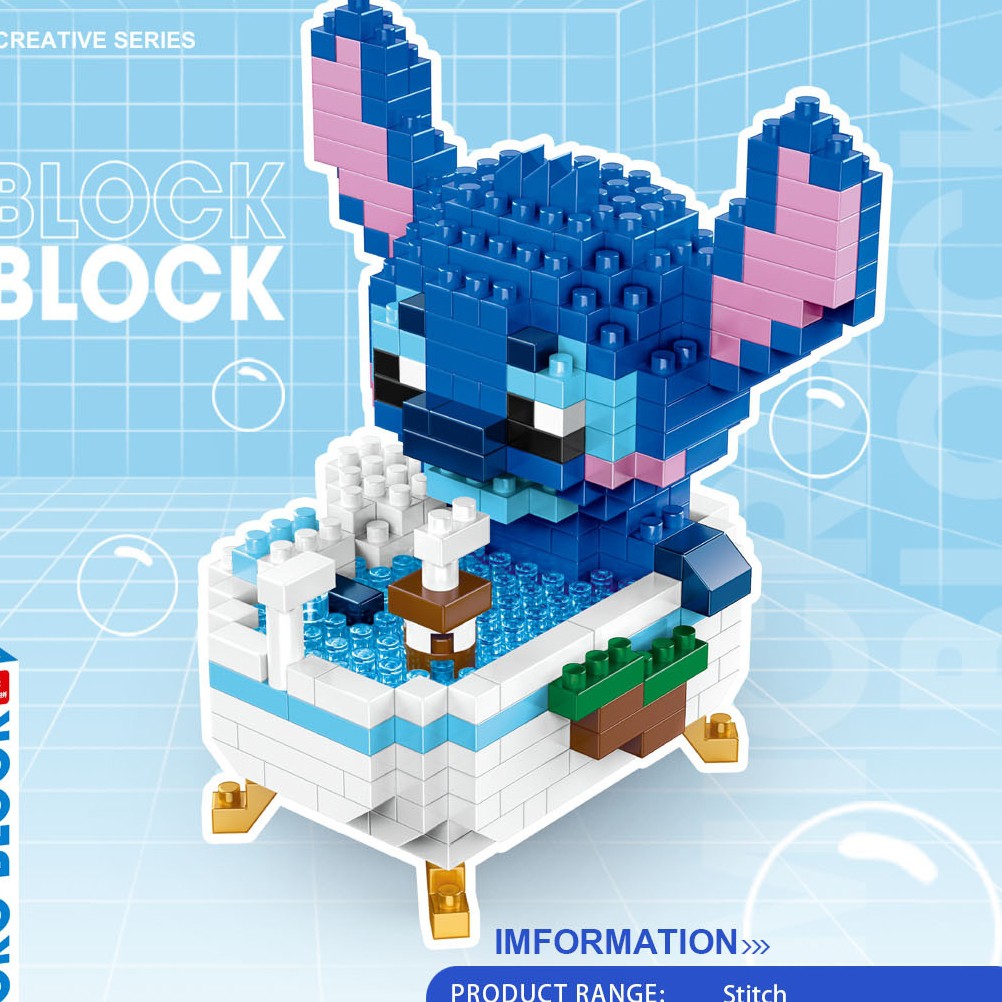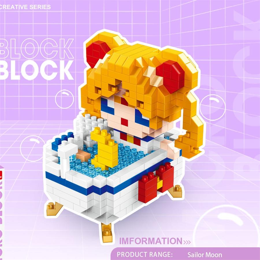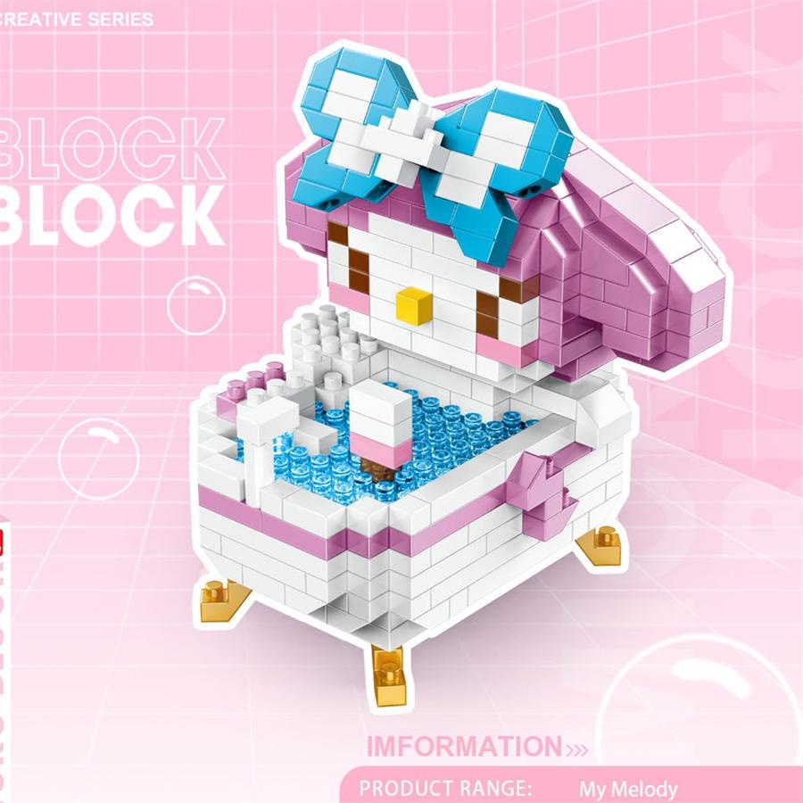 VF Cartoon Bathtub Mini Blocks Hello Kitty Melody Building Toy Sanrio Anime Figure Stellalou Micro Bricks Stitch Sailor Moon Nanoblock Toys for Girl Birthday