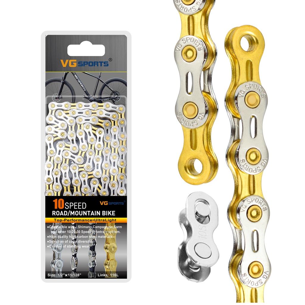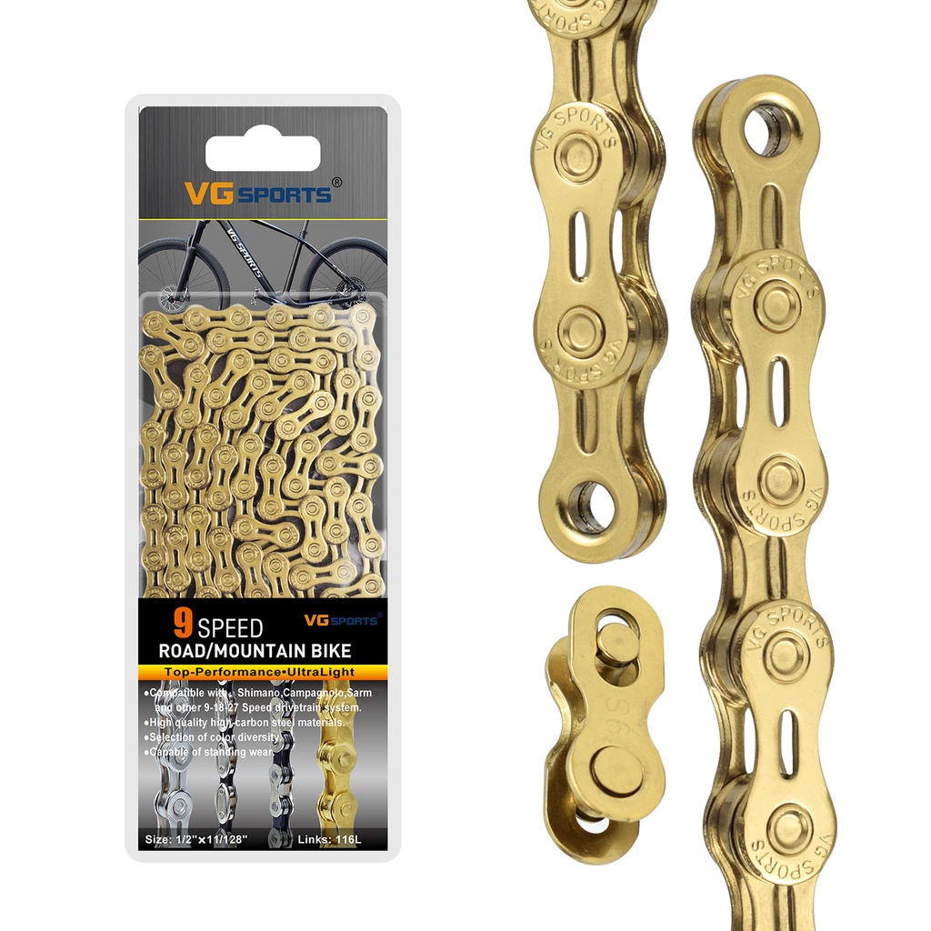 VG Sports Bicycle Chain 6 7 8 9 10 11 Speed Silver Gold Rainbow Color Half Hollow MTB Mountain Bike Road Chains Bicycle Accessories