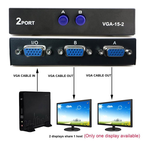 VGA 2 in 1 Out 2 Port VGA Splitter Switch Two Way VGA Video Switch for PC TV Monitor