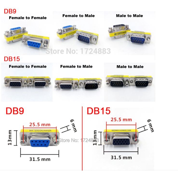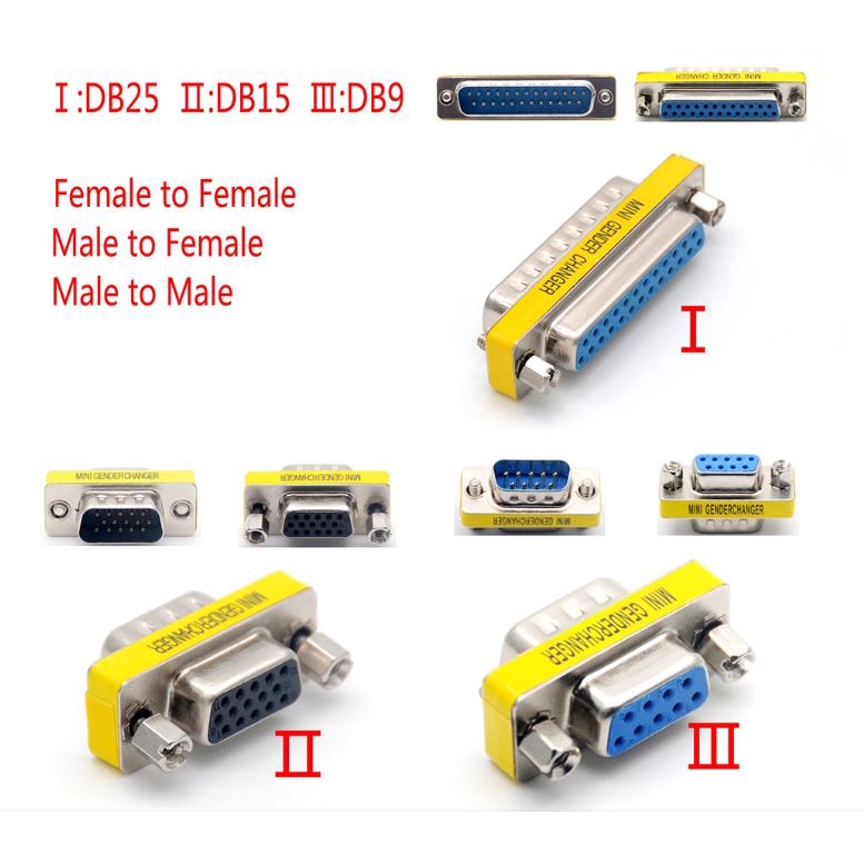 VGA DB25 DB15 DB9 Female to Female Male to Female 25pin 9pin 15pin Gender Adapter Converter