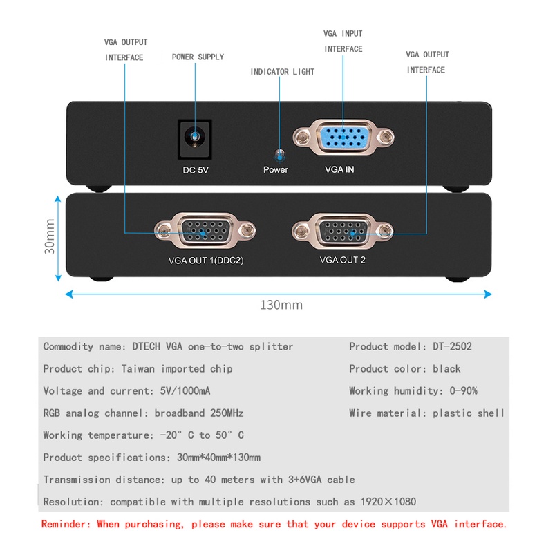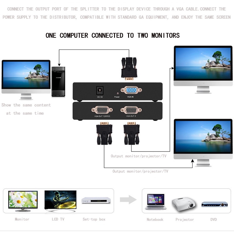 VGA Splitter 1 In 2 Out Desktop Notebook Connector Display Projector Extension Split Screen Same Device 1 Point 2 Hd Video Conversion