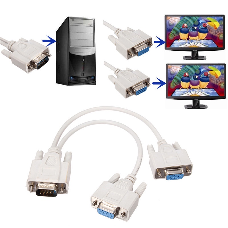 VGA Splitter Cable 1 Male to 2 Female Adapter Monitor Y Splitter Cable 30cm Black Can't Connect Two at The Same time