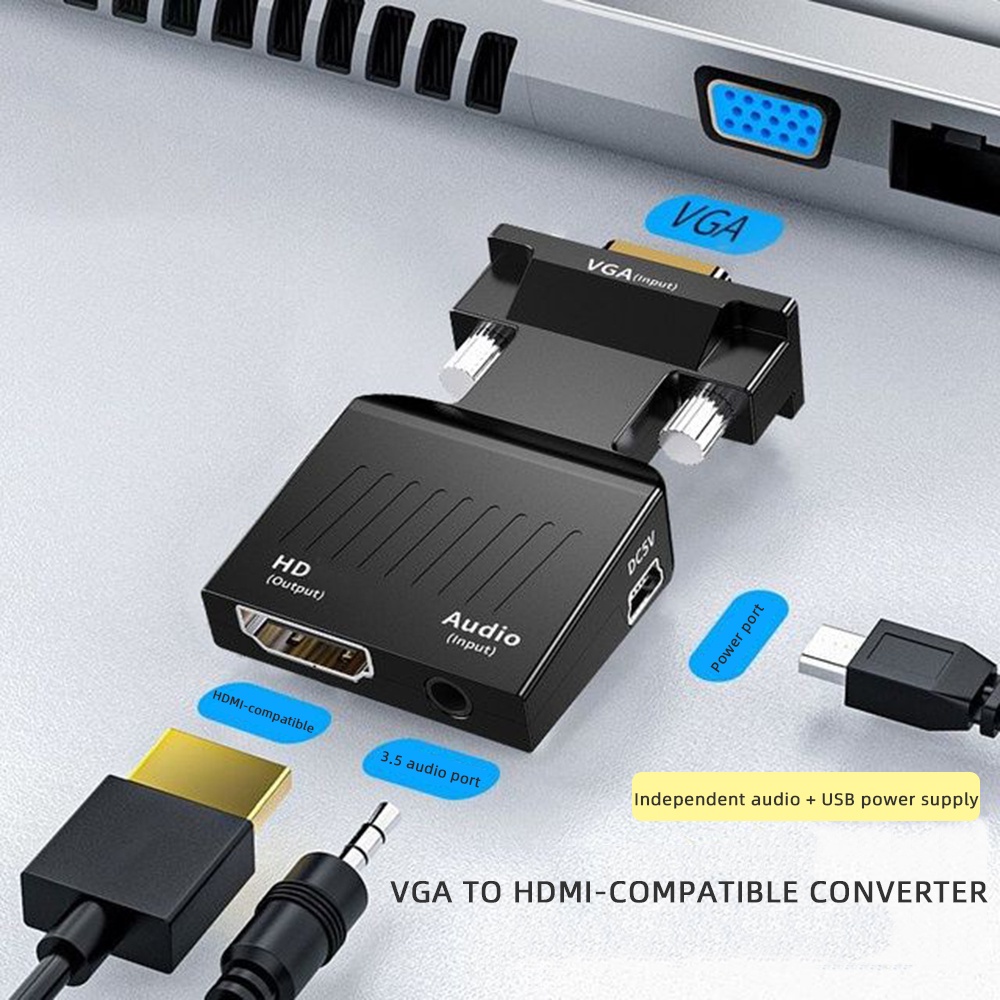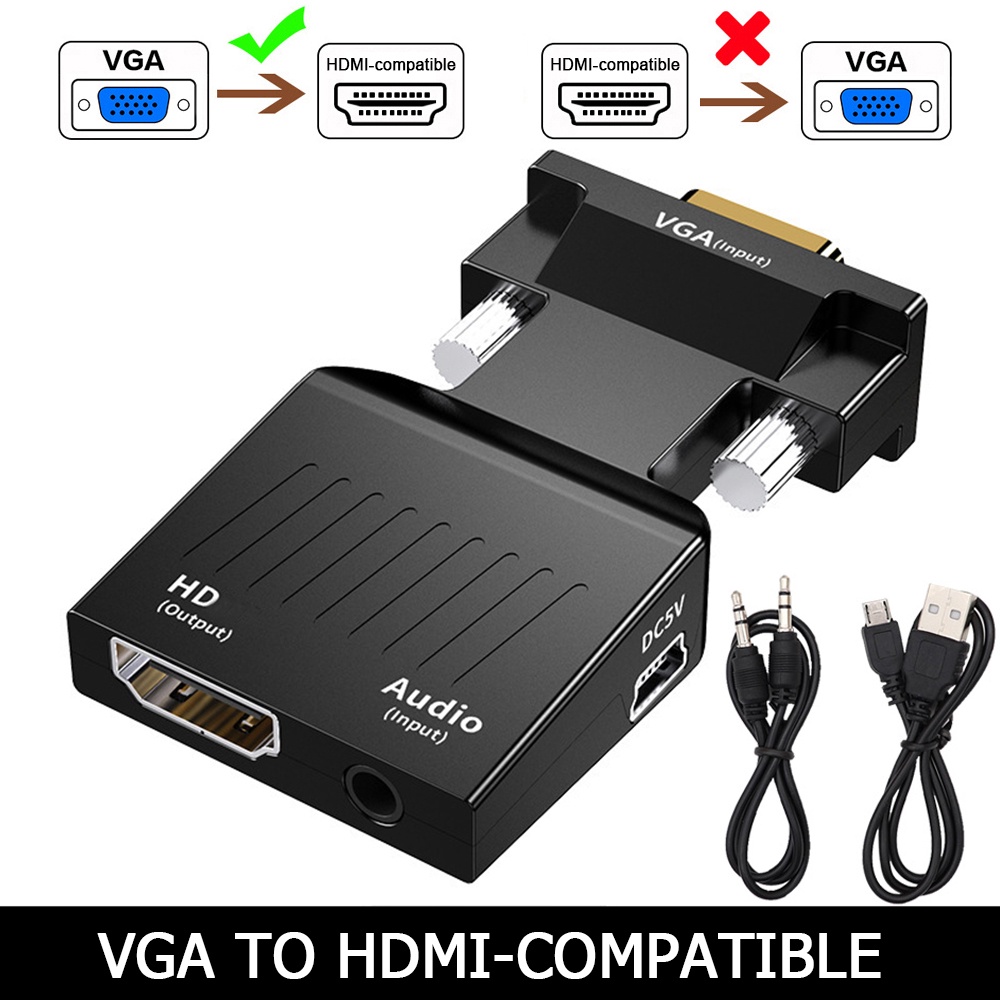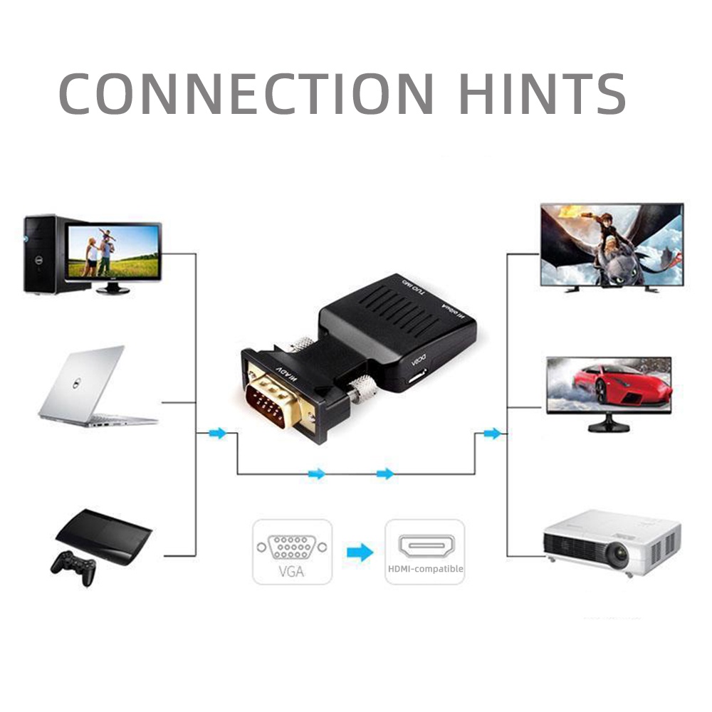 VGA to HDMI Converter Adapter HD 1080P with Audio Cable for PC Laptop to HDTV Projector