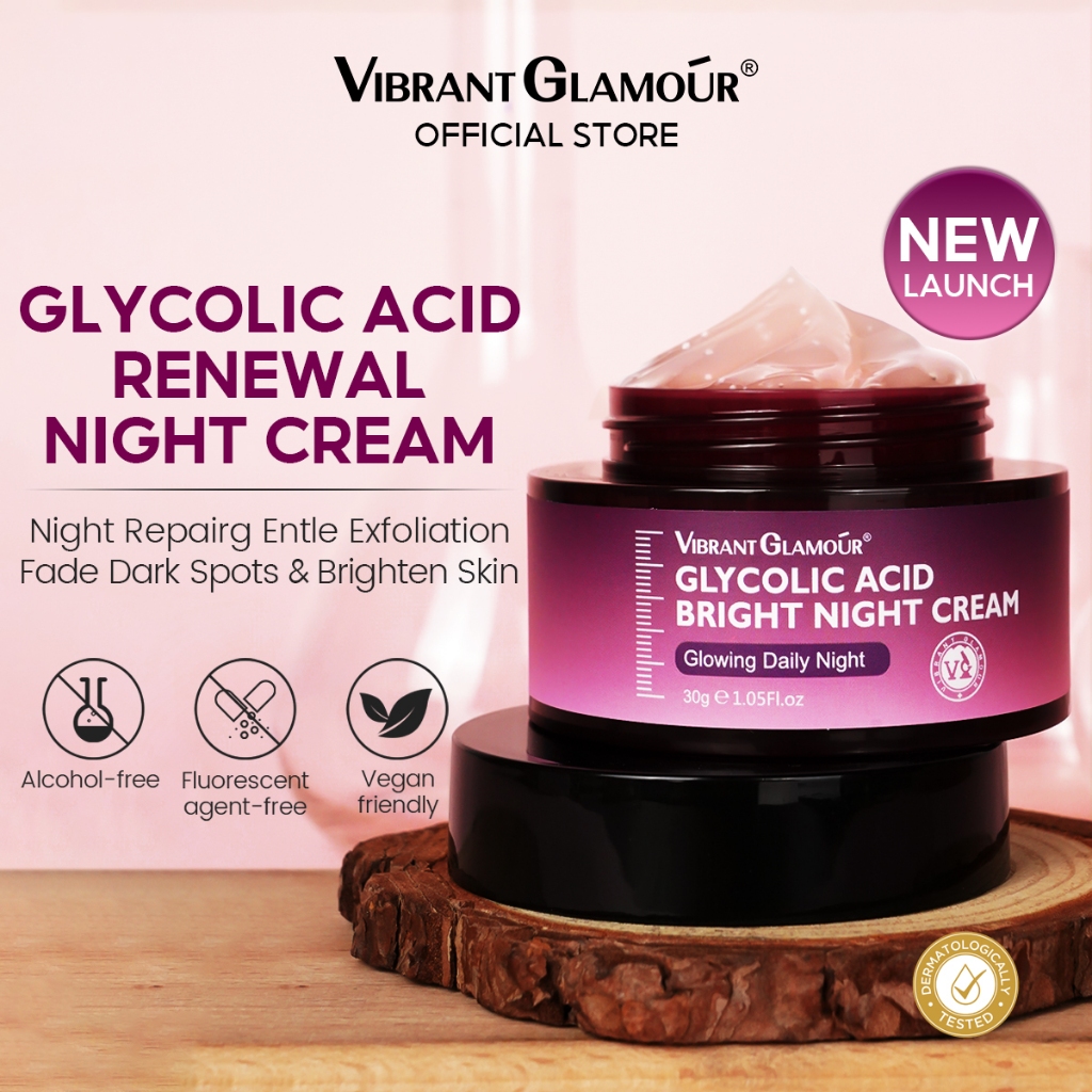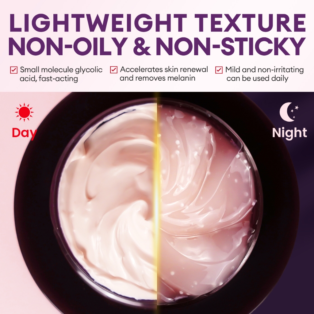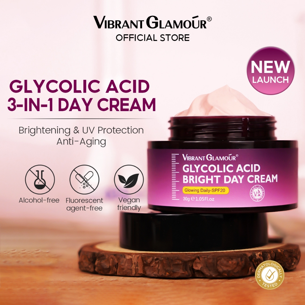VIBRANT GLAMOUR Glycolic Acid Day Cream SPF20 + Renewal Exfoliating Night Cream Fades Dark Spots UV Sunscreen Brightens Skin Tone Anti-Aging Fine Lines Repair Skin Care