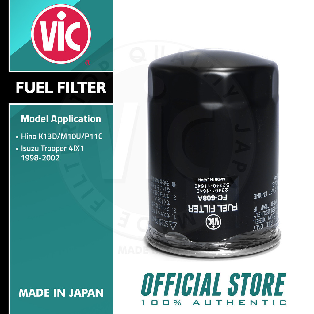 VIC Fuel Filter FC-608A for Hino K13D/M10U/P11C, Isuzu Trooper 4JX1 1998-2002 (FC609J)