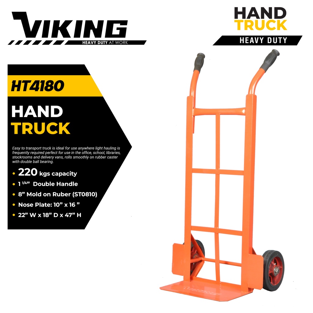 VIKING HEAVY DUTY HAND TRUCK (1-1/4" Double and Curved Handle)180 to 300KG