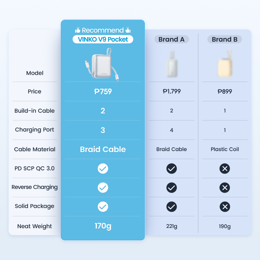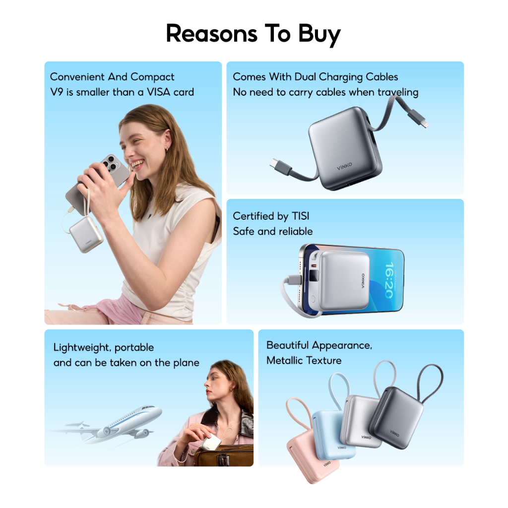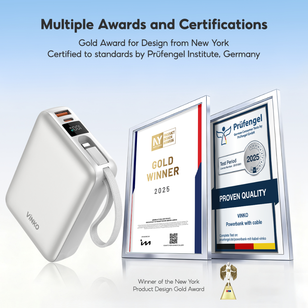 [CCC clarified] VINKO V9 Power Bank 10000mAh Mini LED Display 22.5W Fast Charging Dual Cable Type-C