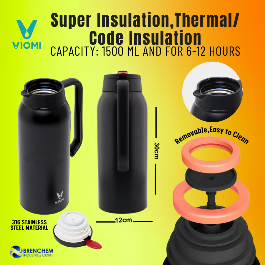 VIOMI Vacuum Flask Insulation Pot Stainless Steel 1.5L Black & White